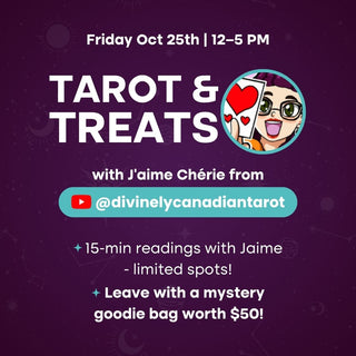 Learn moreStep into the Halloween energy with a personal tarot reading by Jaime, one of our most loved readers. You'll also walk away with a $50 Halloween Goodie Bag!