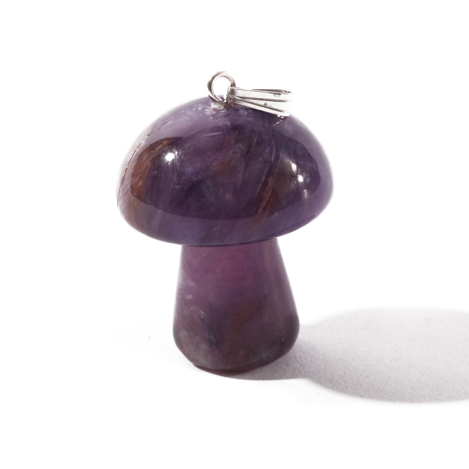Adorn yourself with the magic of nature and transformation captured in our stunning Charoite Mushroom Pendant, a unique fusion of enchanting gemstone and whimsical design.
