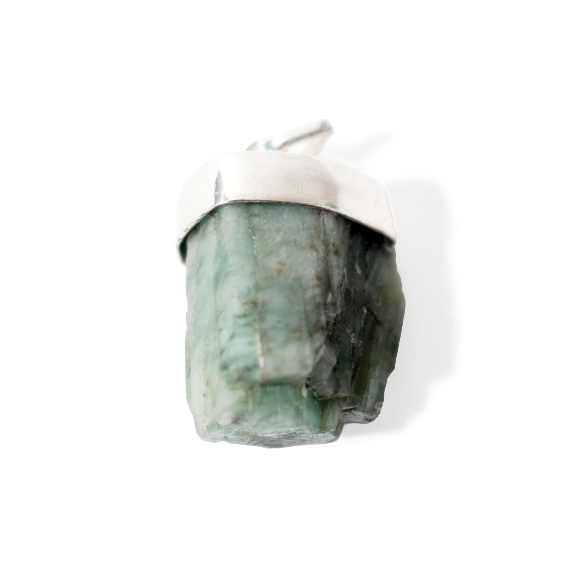 This Emerald Rough Pendant features a raw, unpolished green crystal set in a simple metal frame that highlights its natural texture and rich, earthy energy. Organic and vibrant, it radiates heart-centered power.