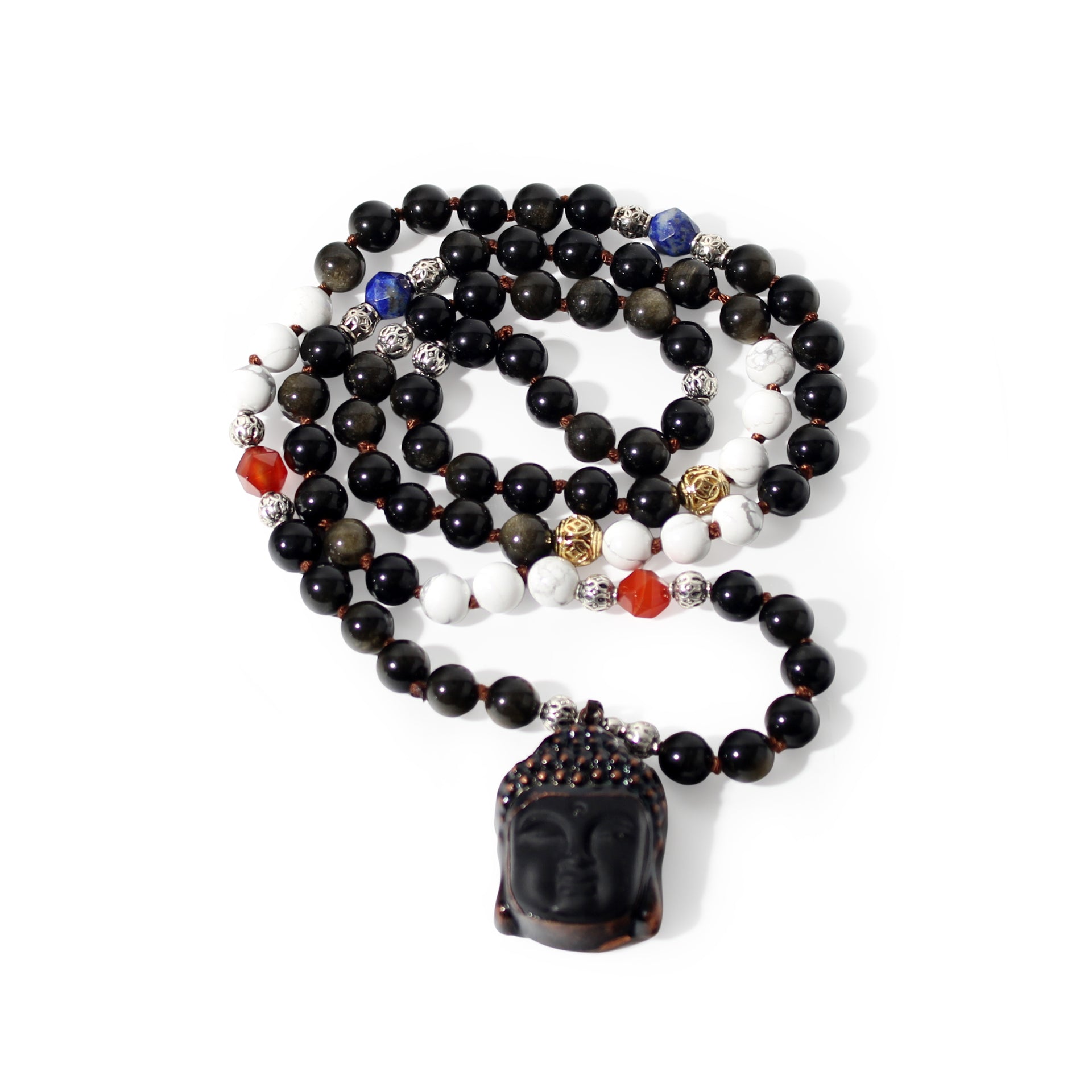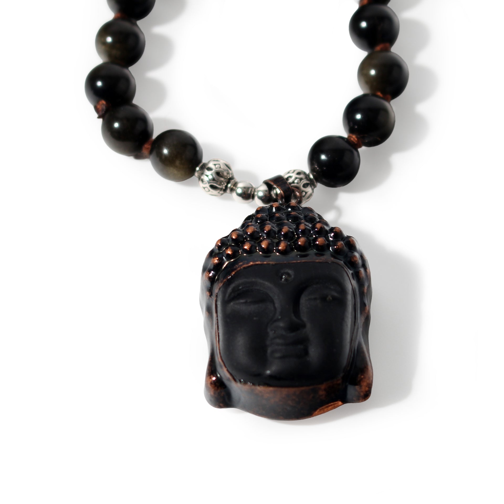 Obsidian Gold Sheen Mala w/ Obsidian Buddha Head - 8mm - 82 Beads