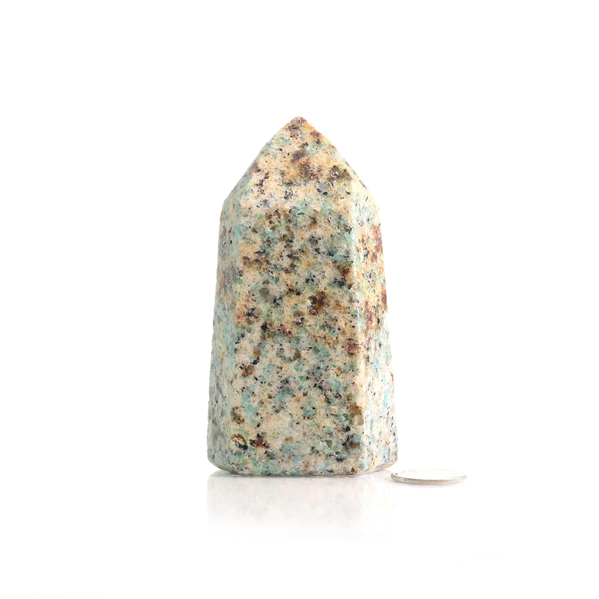 Featuring Amazonite’s signature range of light green to deep blue-green tones, each generator is accented with natural Garnet inclusions, offering a unique color contrast that appeals to both collectors and casual shoppers. The polished point makes these generators ideal for energy work, retail displays, gift bundles, or metaphysical kits.