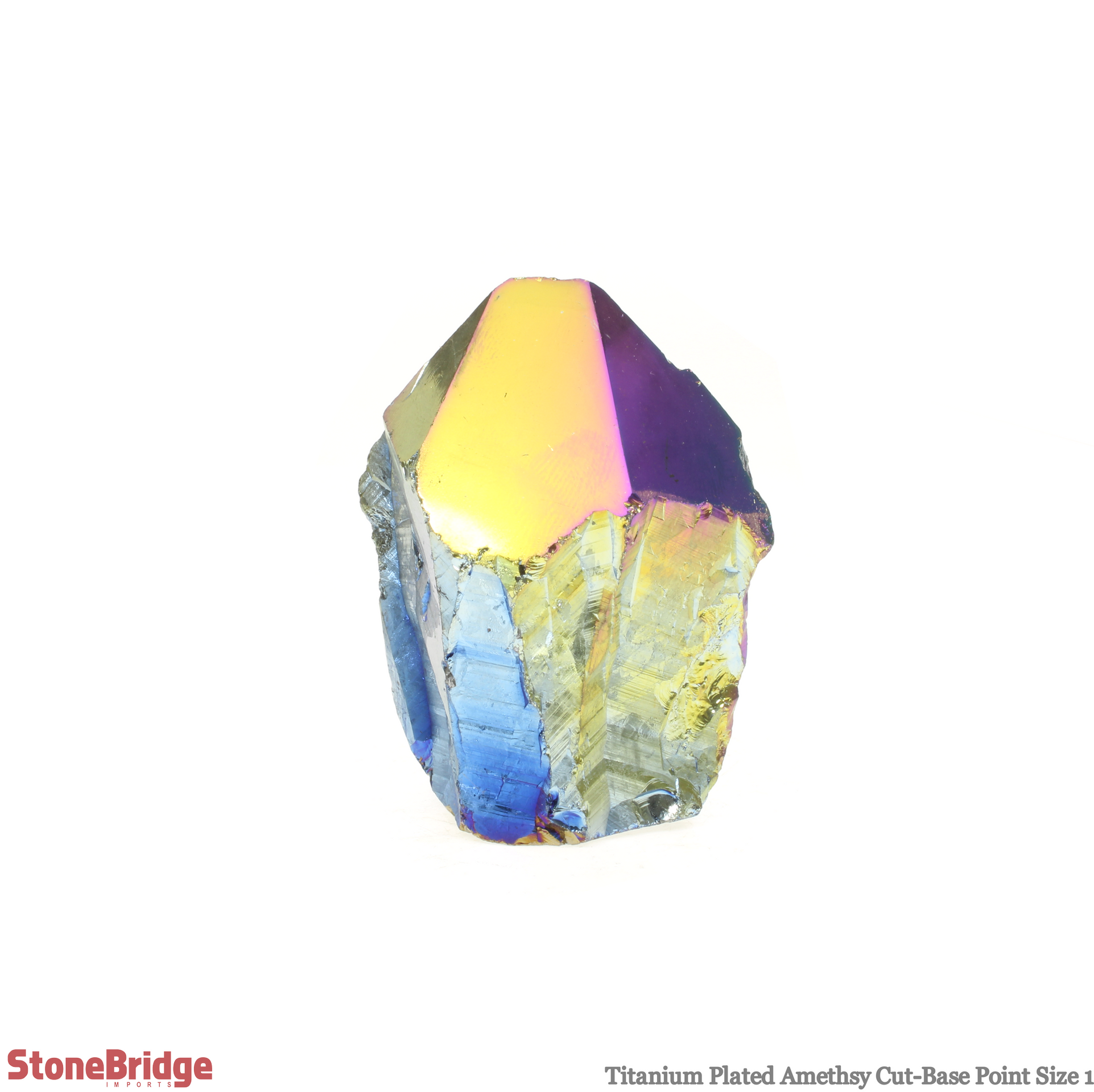 Natural amethyst with layers of titanium creates a spectrum of rainbow colours done by a process known as magnetron ionization. Like any other kind of precious mineral, the molecules bond to the crystal in a high-heat vacuum chamber, which results in a rainbow colouring that cannot be scraped or scratched off. However, titanium molecules could be bonded to the quartz by electrostatic charge, meaning only electricity is used to deposit the titanium layers and create rainbow colours. Very little heat is involved, and the integrity of the crystal is maintained. The crystal does not become brittle or prone to breakage as with heat treatments.