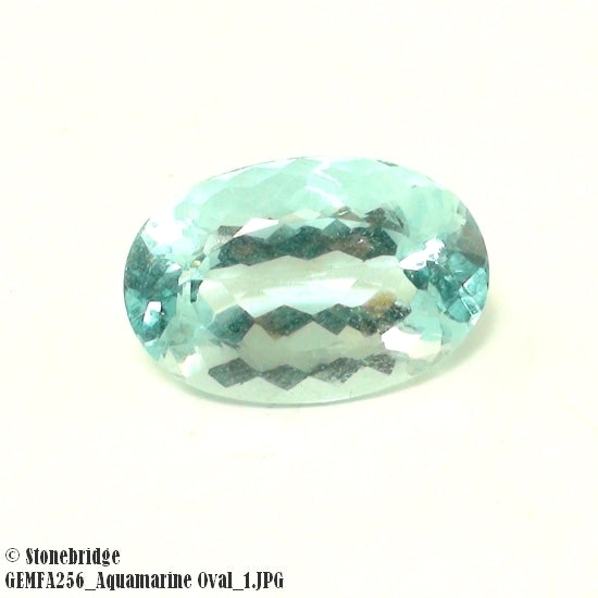 Aquamarine Oval Stonebridge Imports Aquamarine Oval Wholesale! Weight: 8.5ct Length: 1.7cm Width: 1.1cm Type: Beryl Chemical Formula: Be3Al2SiO6 Color: Blue, greenish-blue Crystal Structure: Hexagonal Cleavage: 3,1 - basal Transparency: Transparent to translucent Luster: Vitreous Mythology: In Medieval times, the stone was thought to reawaken the love of married couples. It was also believed to render soldiers invincible. There are many myths and legends about the aquamarine stone. Another Roman legend stated that the stone absorbs the atmosphere of young love: “When blessed and worn, it joins in love, and does great things.” Aquamarine was also considered the most appropriate morning gift to give to a bride by her groom following the consummation of their marriage. Usage: Translucent Aquamarine displaying cat’s eye effect and asterism are uncommon, but they do exist and are cut and polished into cabochons. Many exceptionally large and flawless Aquamarine gem pieces have been cut. Occasionally, perfect, flawless, six-sided crystals are worn as necklace pendants. Lesser quality Aquamarines lacking good transparency are sometimes used as beads and as rough polished stones in bracelets and necklaces. Metaphysical Properties:It supports the healing of inflammatory diseases of all kinds, and is soothing to eczema, hives, rosacea and psoriasis. It may also help prevent outbreaks of herpes. Some skin diseases caused by allergies may be cured by Aquamarine, and can complement the treatment for shingles. Aquamarine is a stone of breath, the respiratory tract, and the lungs. It can heal sinus conditions and frequent coughing, and is effective for hay fever and other chronic allergies. It relieves colds and bronchitis. Aquamarine is a cooling stone, countering infections and useful for laryngitis, strep throat or a sore throat. It harmonizes the pituitary and thyroid glands, regulating hormones and growth. It is beneficial for teeth and gum problems. Healing Properties:Sharpens intuition and opens clairvoyance. Wonderful for meditation. Aquamarine has an affinity with sensitive people. It can invoke tolerance of others and overcomes judgmentalism, giving support to those overwhelmed by responsibility. Clarifies perception, sharpens the intellect and clears confusion. Useful for closure on all levels. Promotes self-expression. Soothes fears and increases sensitivity. Shields the aura and aligns the chakras. Highly protective during pregnancy, it helps to guard both mother and baby from harm. Discourages miscarriage.
