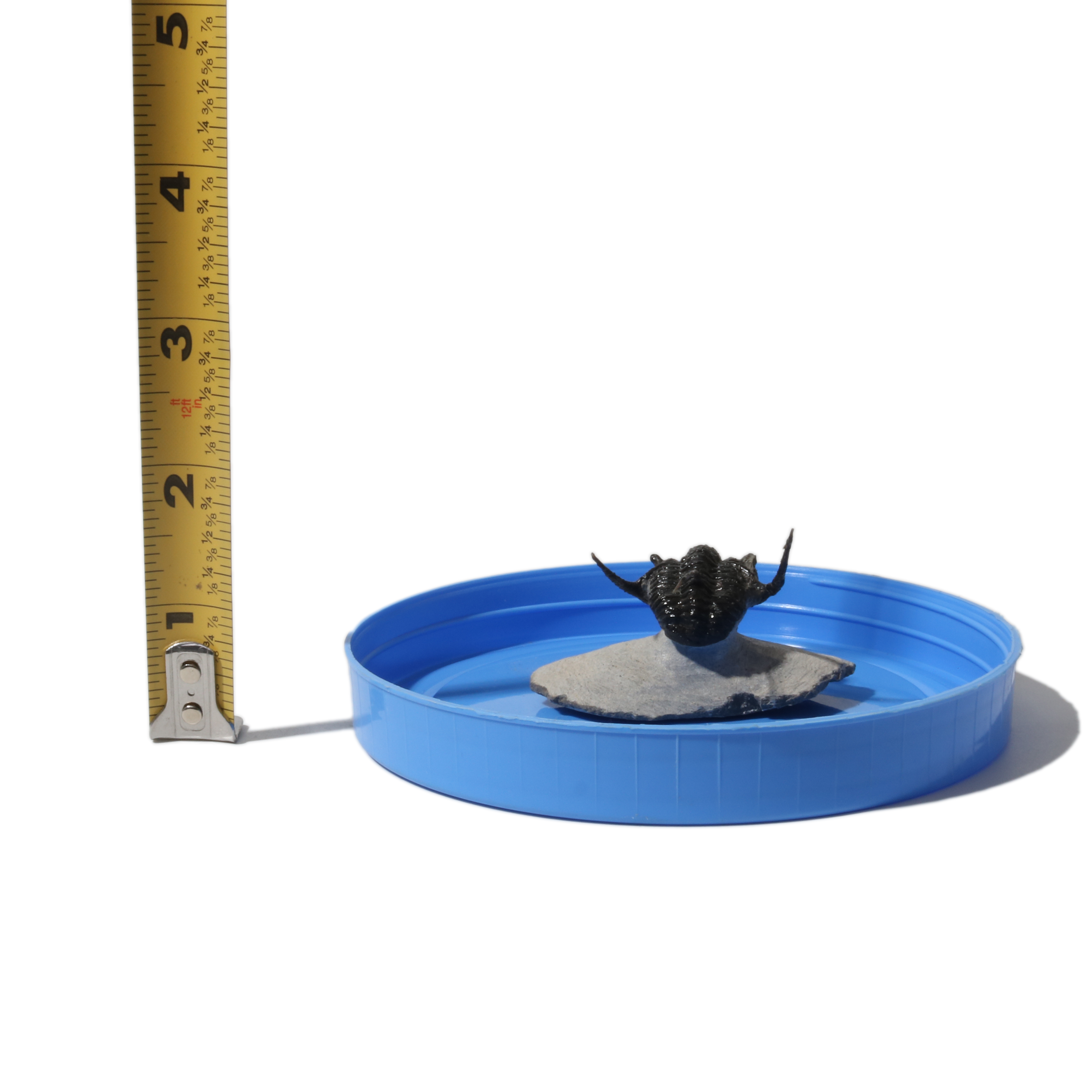 Trilobites are among the earliest known arthropods, and their fossils are highly prized for their detailed preservation and historical significance. This particular specimen is showcased in striking black, highlighting its intricate exoskeleton and natural symmetry.