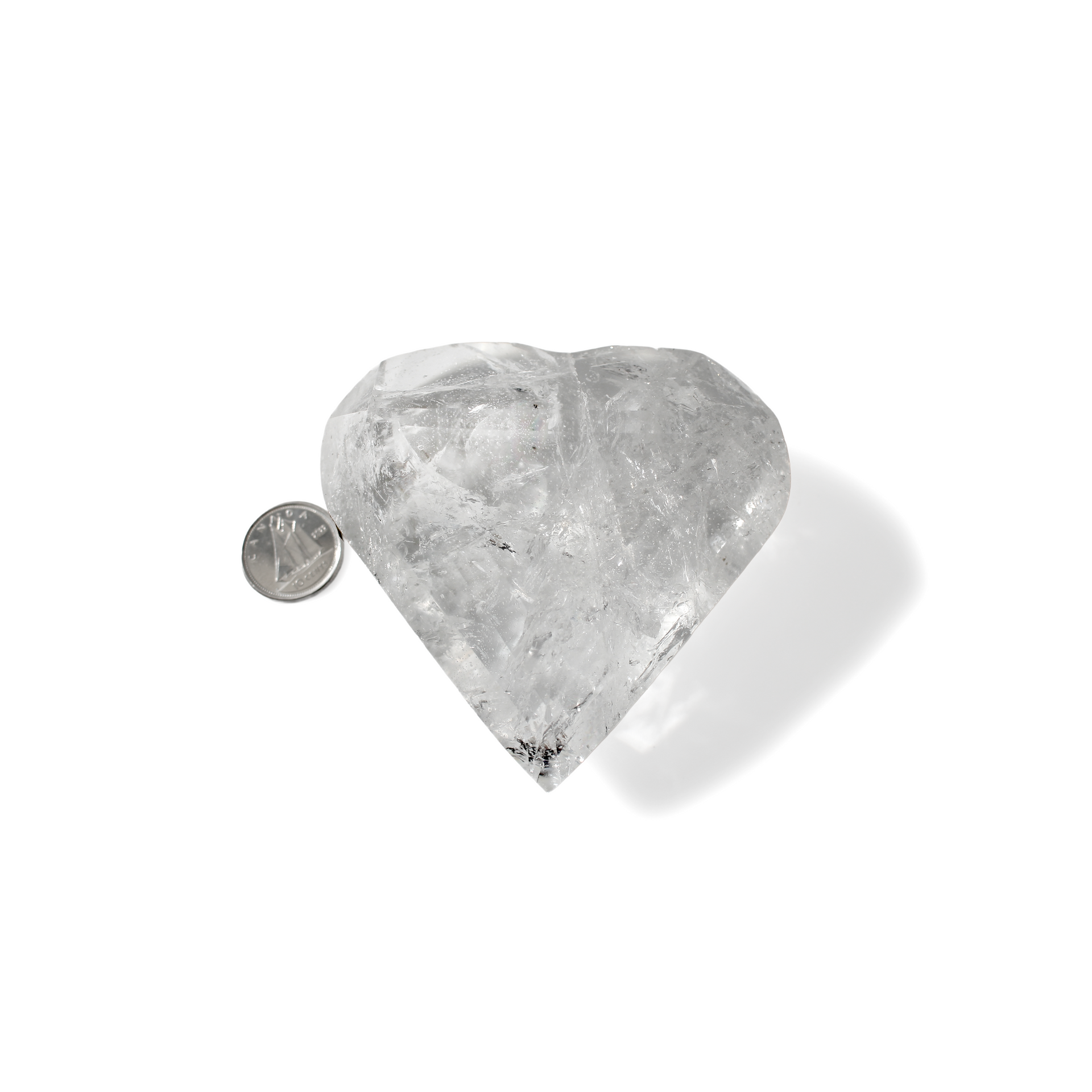 This 2" Clear Quartz A Faceted Heart #6 features brilliant clarity and expertly cut facets that reflect light with radiant precision. Smooth and luminous, it’s a timeless piece for amplifying energy and intention.