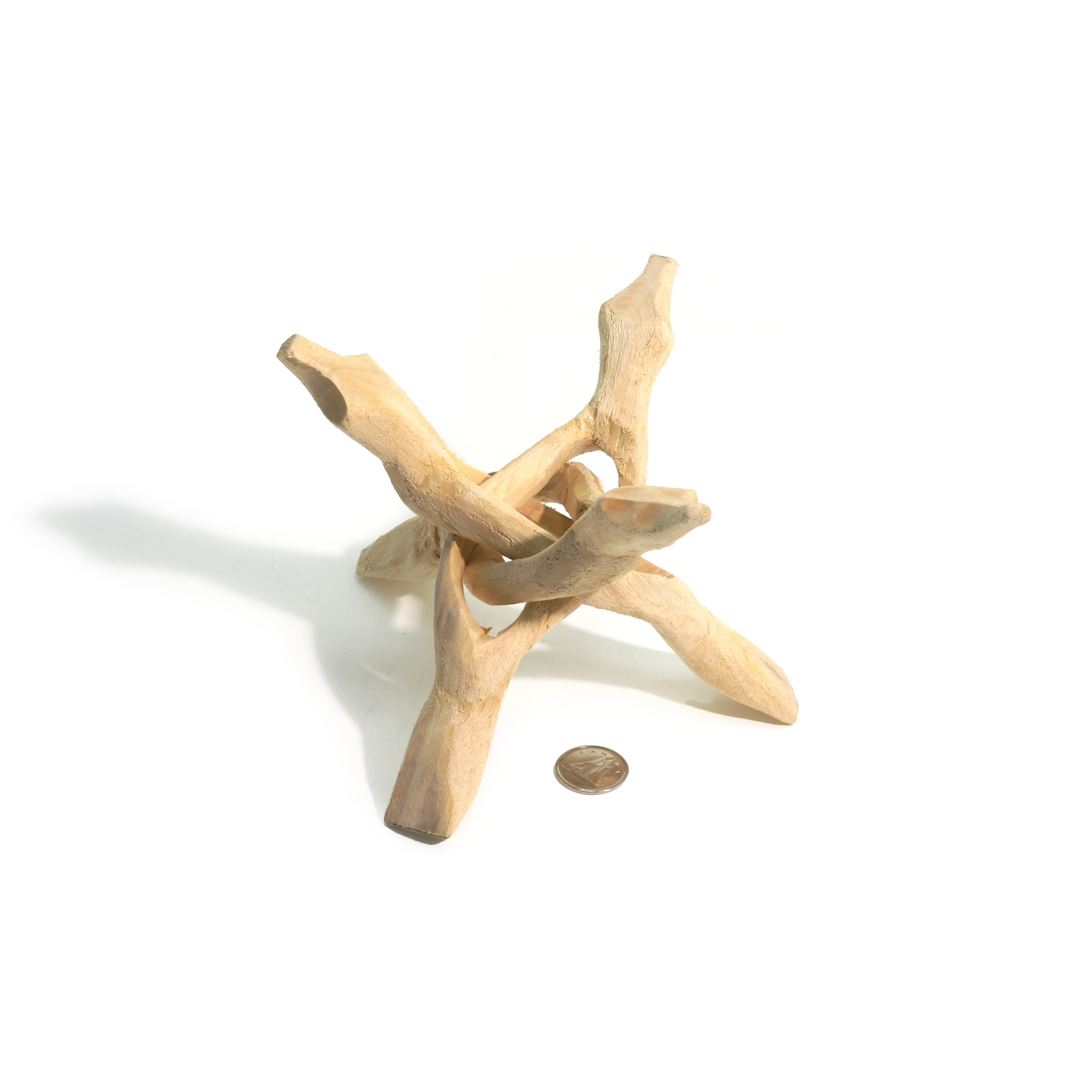 Three hand-carved legs are interlaced to produce a magnificent display piece hand carved from a single piece of Sheesham wood known as Indian Rosewood, which ranges in colour from a natural light brown to tanned cream.