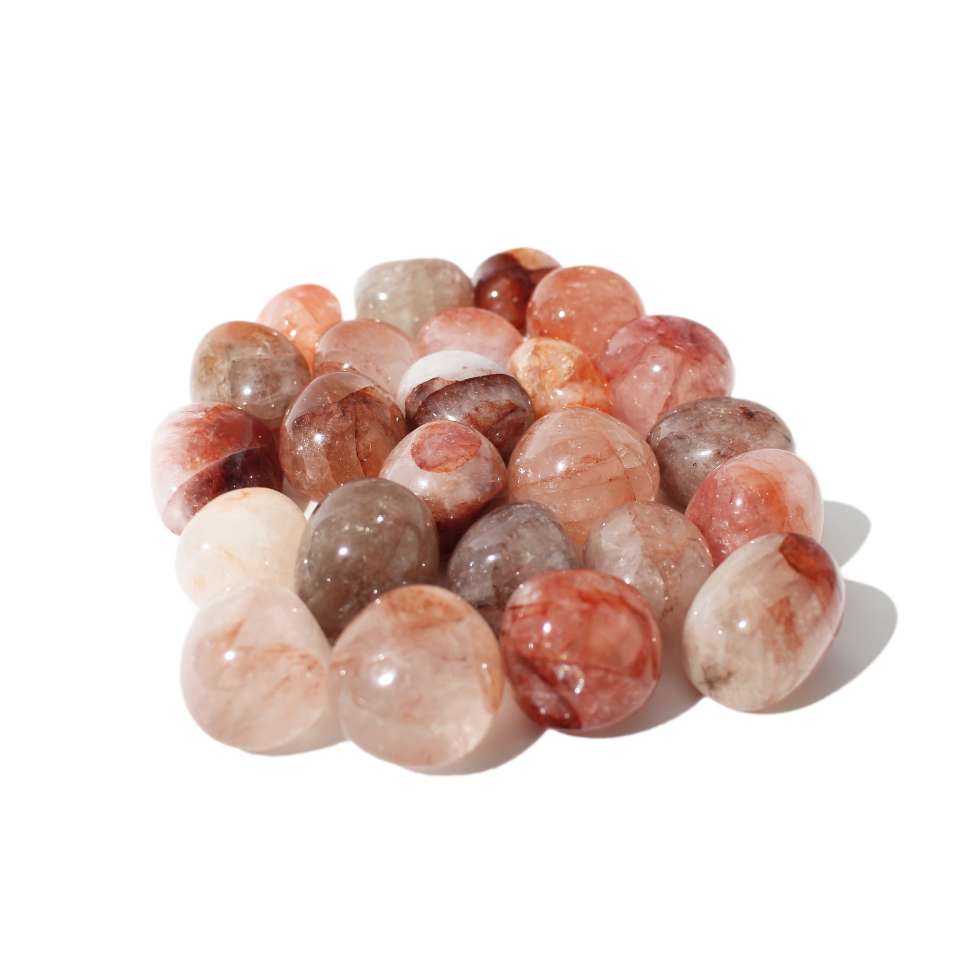 These Fire Quartz Tumbled Stones glow with fiery red, orange, and smoky inclusions within clear or milky quartz, each one polished to a radiant, glassy finish. Bold and energizing, they spark action and inner strength.