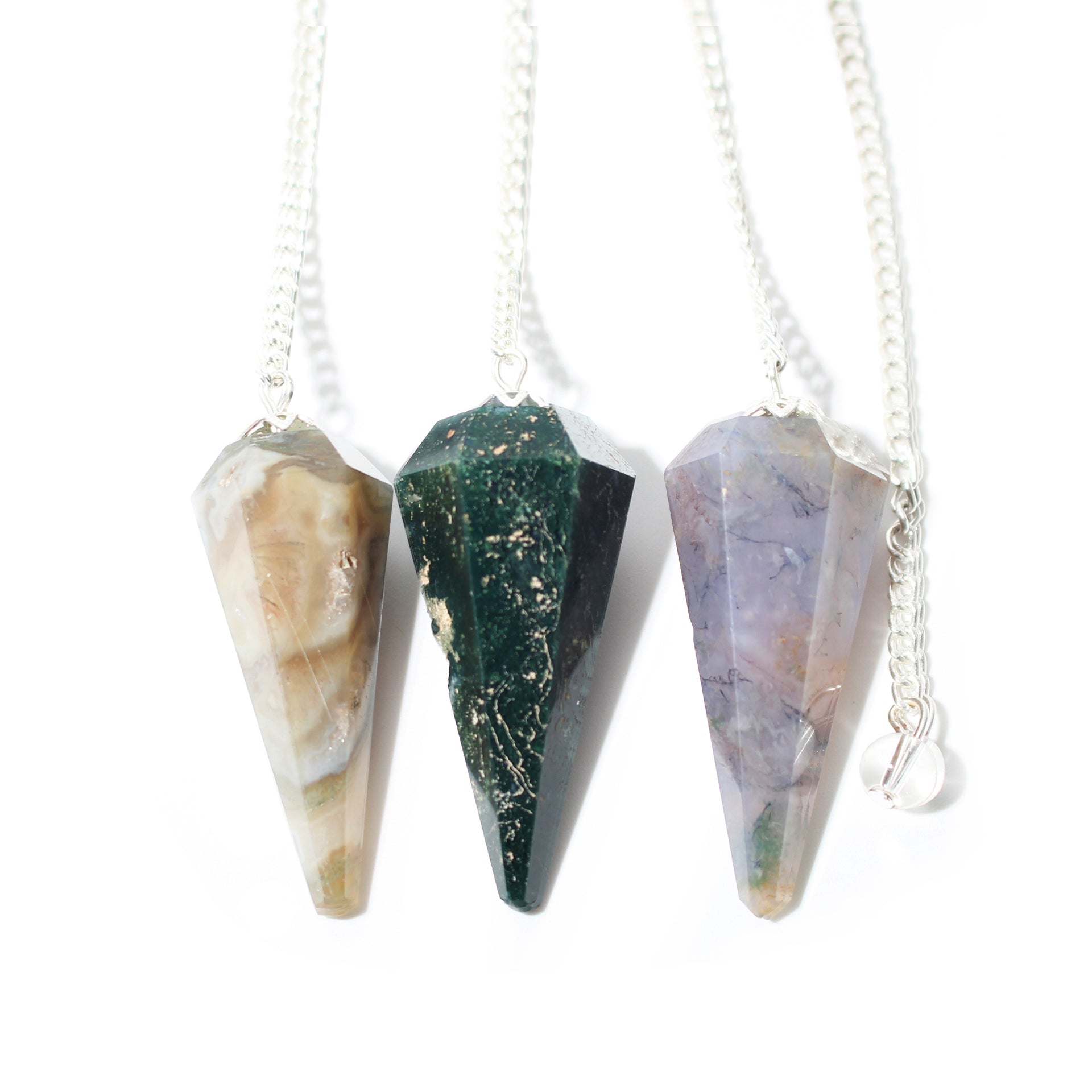 Green Moss Agate Pendulum 6 Facet & Bead - 3 Pack