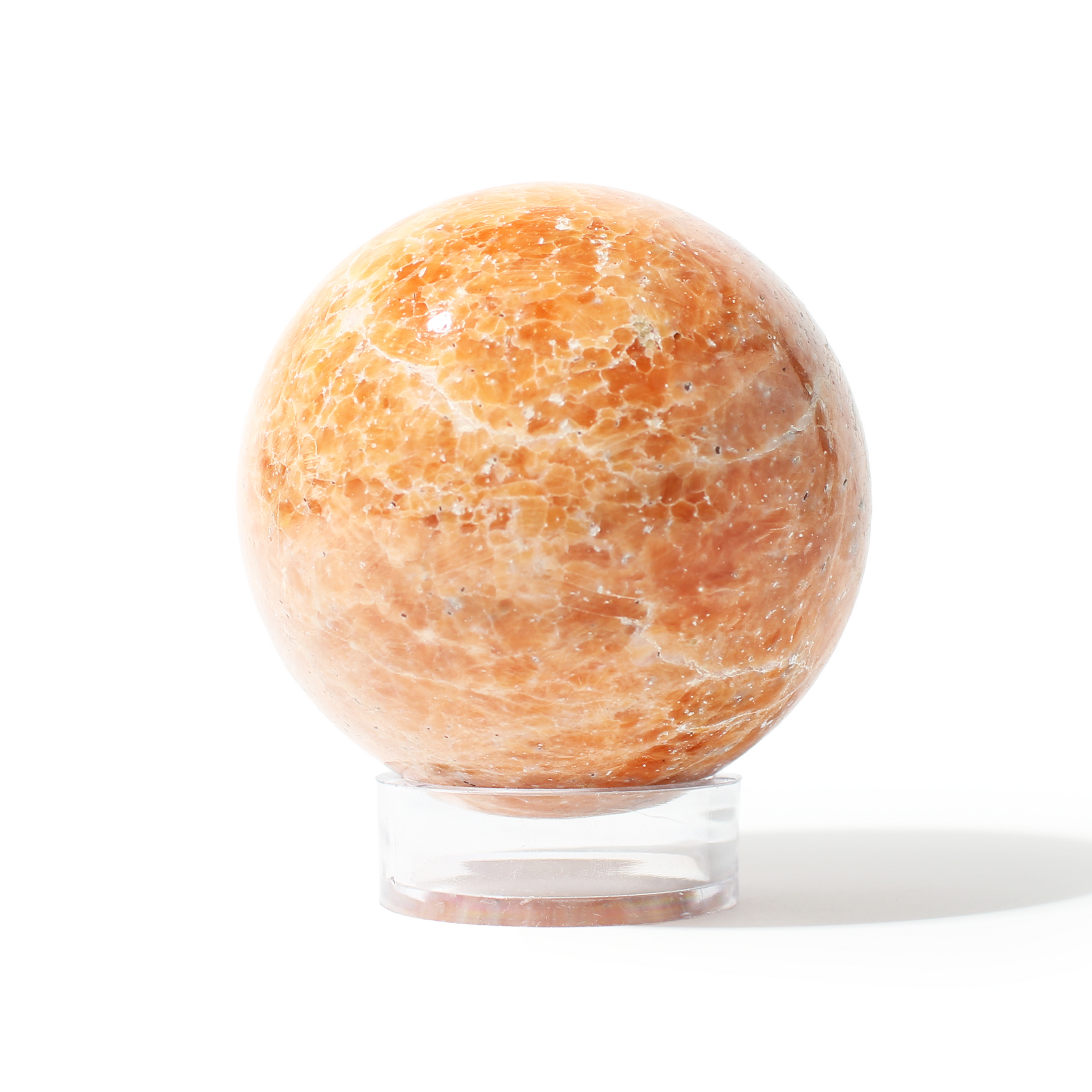 Orange Calcite Sphere Unique #9 measures 3" and glows with bright, cheerful orange tones and natural translucence. Uplifting and energizing, it brings joy, creativity, and warmth into any space.