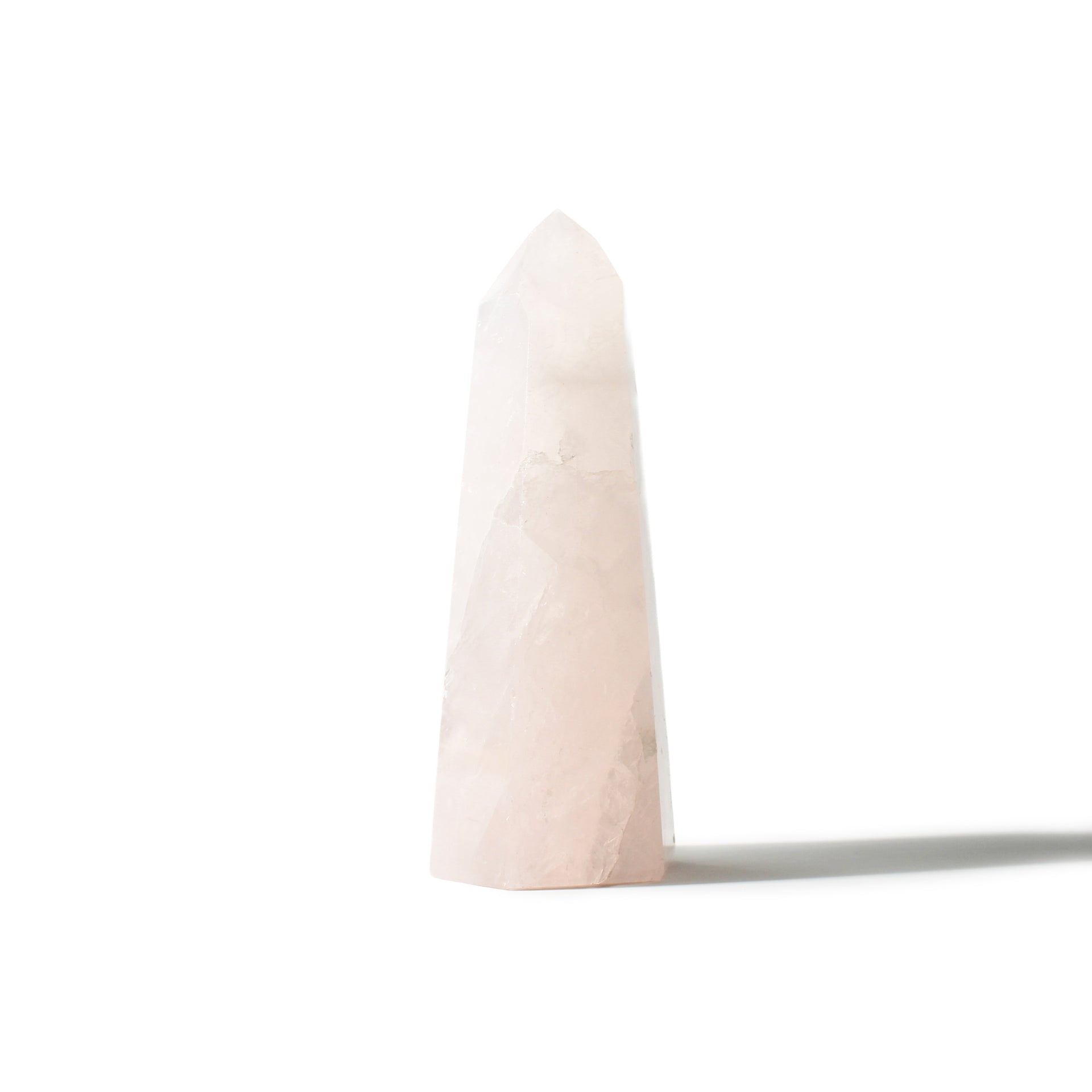 This Rose Quartz Generator stands 6 1/2" tall, showcasing soft blush-pink tones with gentle translucency, polished into a smooth, elegant point that radiates calming, heart-centered energy. Each piece highlights Rose Quartz's natural beauty and soothing presence.