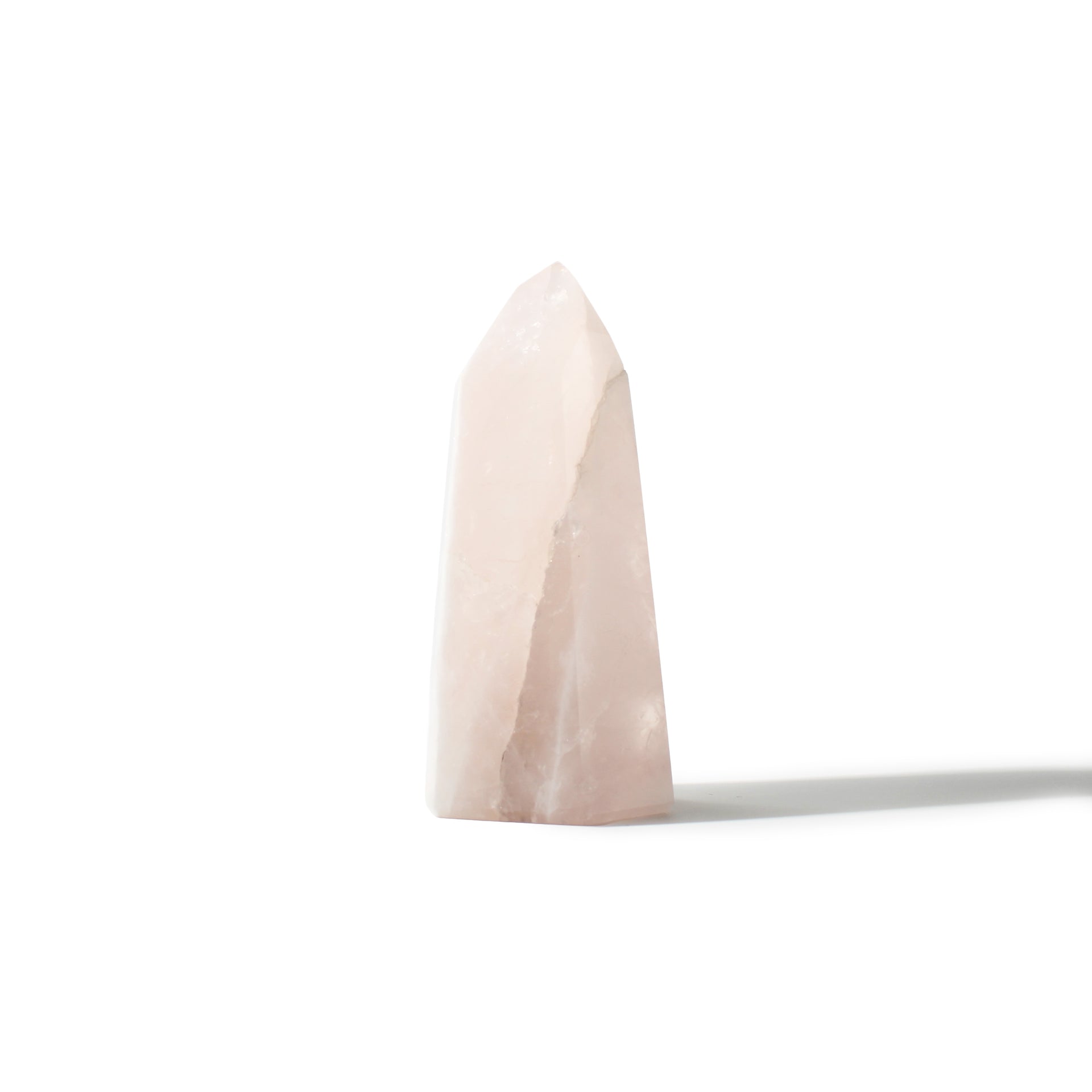 This Rose Quartz Generator stands 5 1/2" tall, showcasing soft blush-pink tones with gentle translucency, polished into a smooth, elegant point that radiates calming, heart-centered energy. Each piece highlights Rose Quartz's natural beauty and soothing presence.