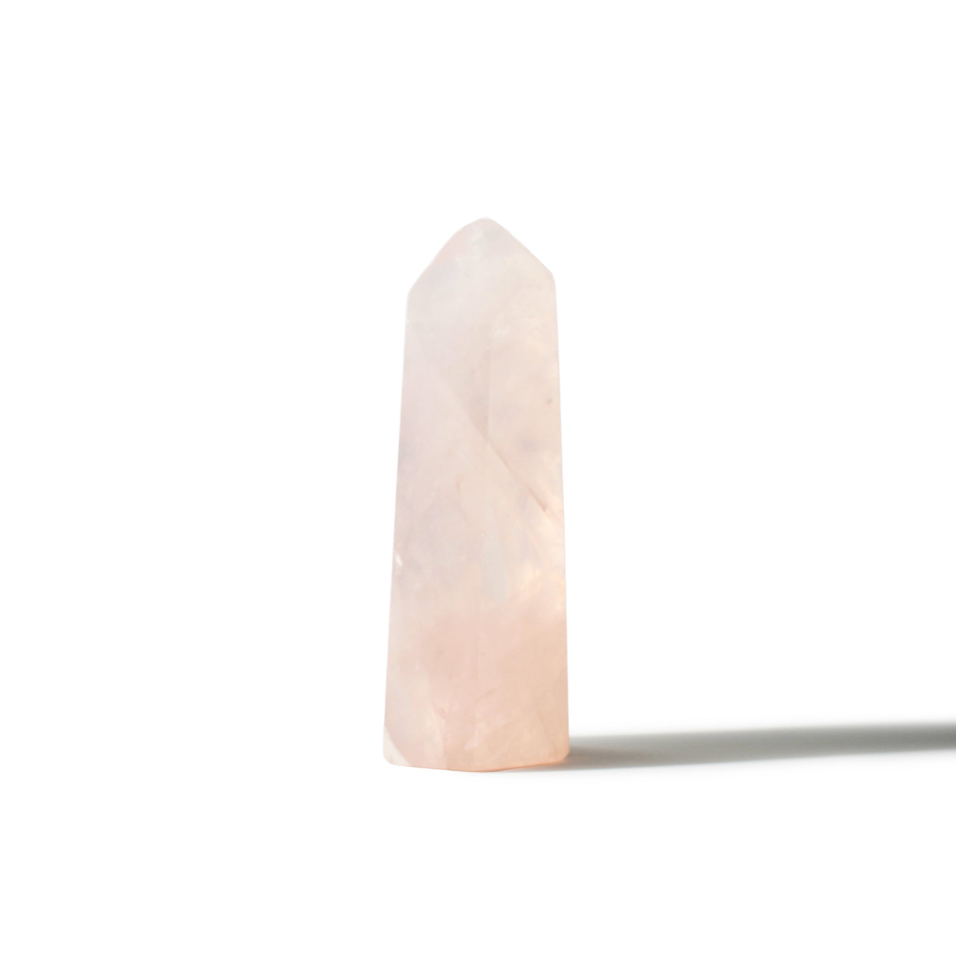 This Rose Quartz Generator stands 6" tall, showcasing soft blush-pink tones with gentle translucency, polished into a smooth, elegant point that radiates calming, heart-centered energy. Each piece highlights Rose Quartz's natural beauty and soothing presence.