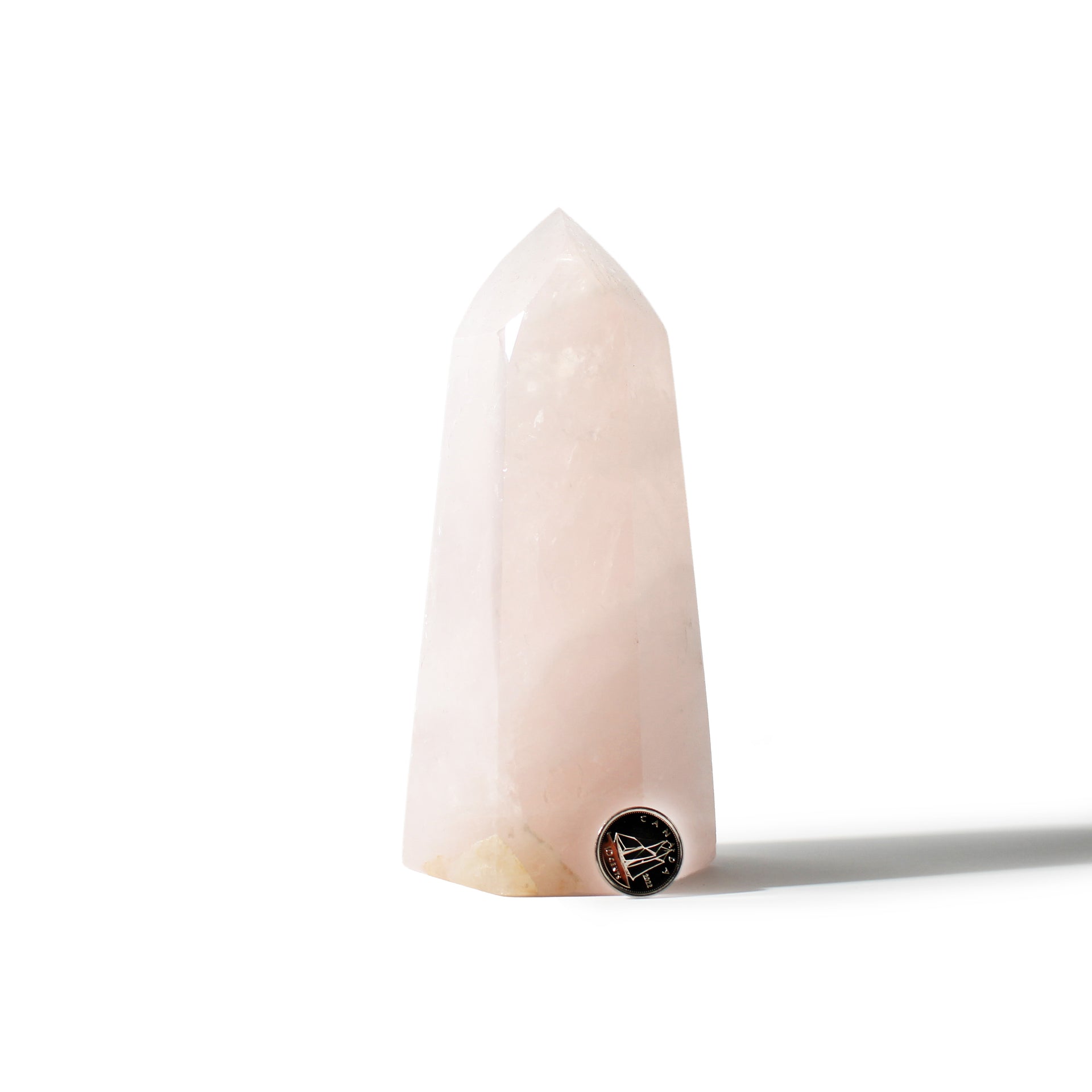 This Rose Quartz Generator stands 6" tall, showcasing soft blush-pink tones with gentle translucency, polished into a smooth, elegant point that radiates calming, heart-centered energy. Each piece highlights Rose Quartz's natural beauty and soothing presence.
