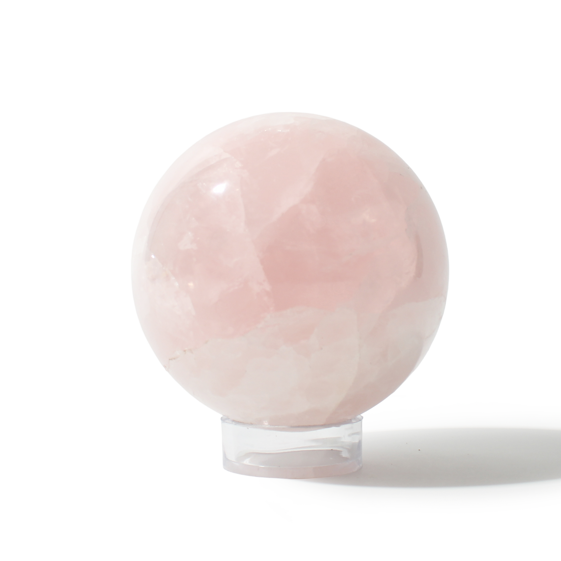 Rose Quartz Sphere Unique #117 - 4" across and features soft pink tones with a smooth, polished finish. Radiating gentle, loving energy in all directions, it’s ideal for emotional healing and heart-centered spaces.