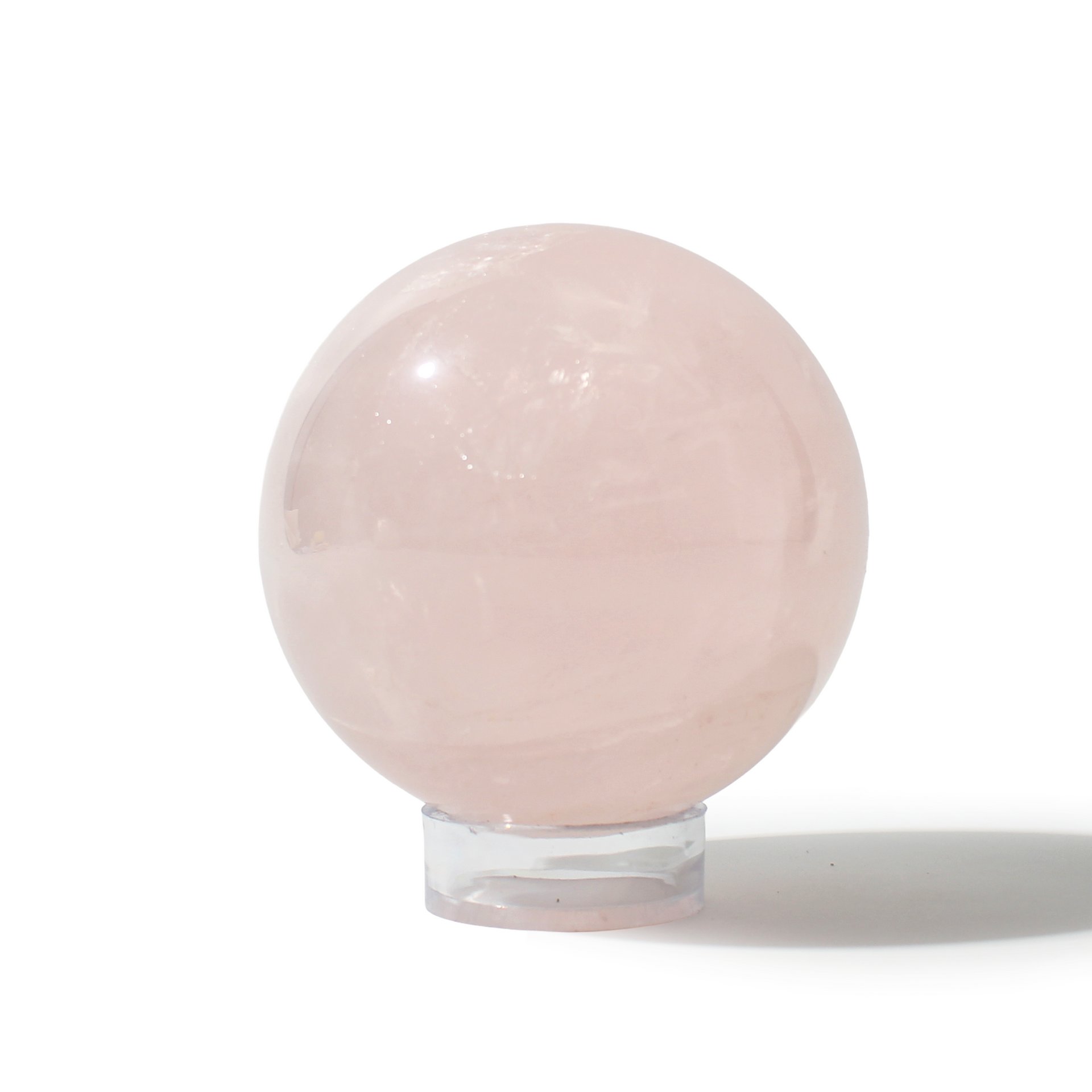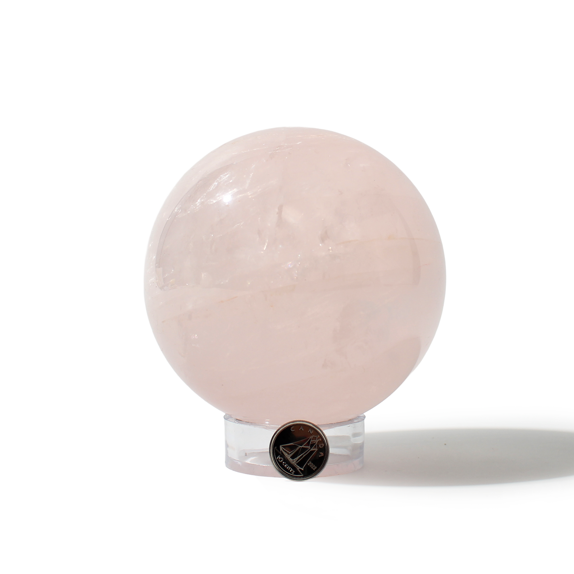 Rose Quartz Sphere Unique #119 - 3 3/4" across and features soft pink tones with a smooth, polished finish. Radiating gentle, loving energy in all directions, it’s ideal for emotional healing and heart-centered spaces.