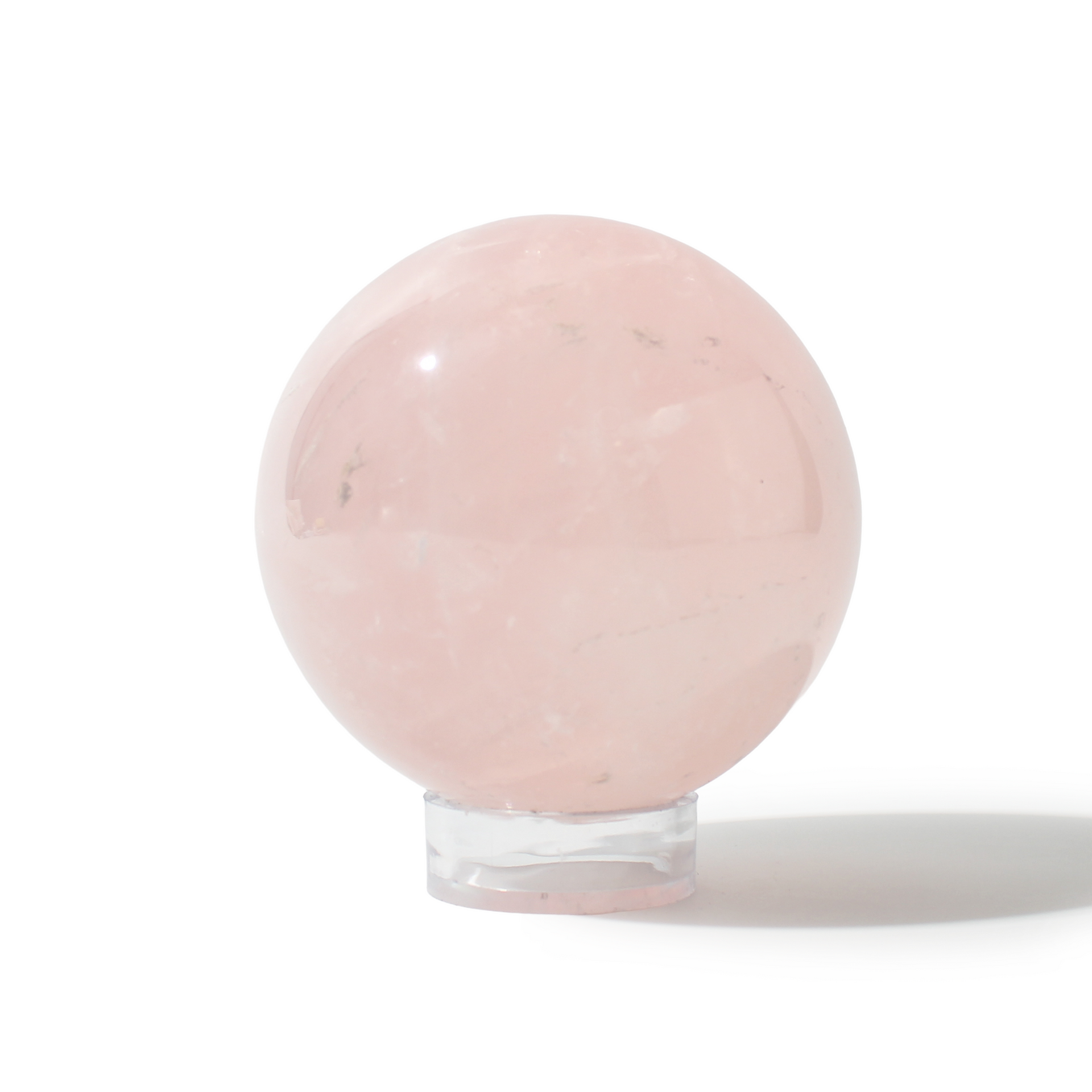 Rose Quartz Sphere Unique #167 - 3 3/4" across and features soft pink tones with a smooth, polished finish. Radiating gentle, loving energy in all directions, it’s ideal for emotional healing and heart-centered spaces.