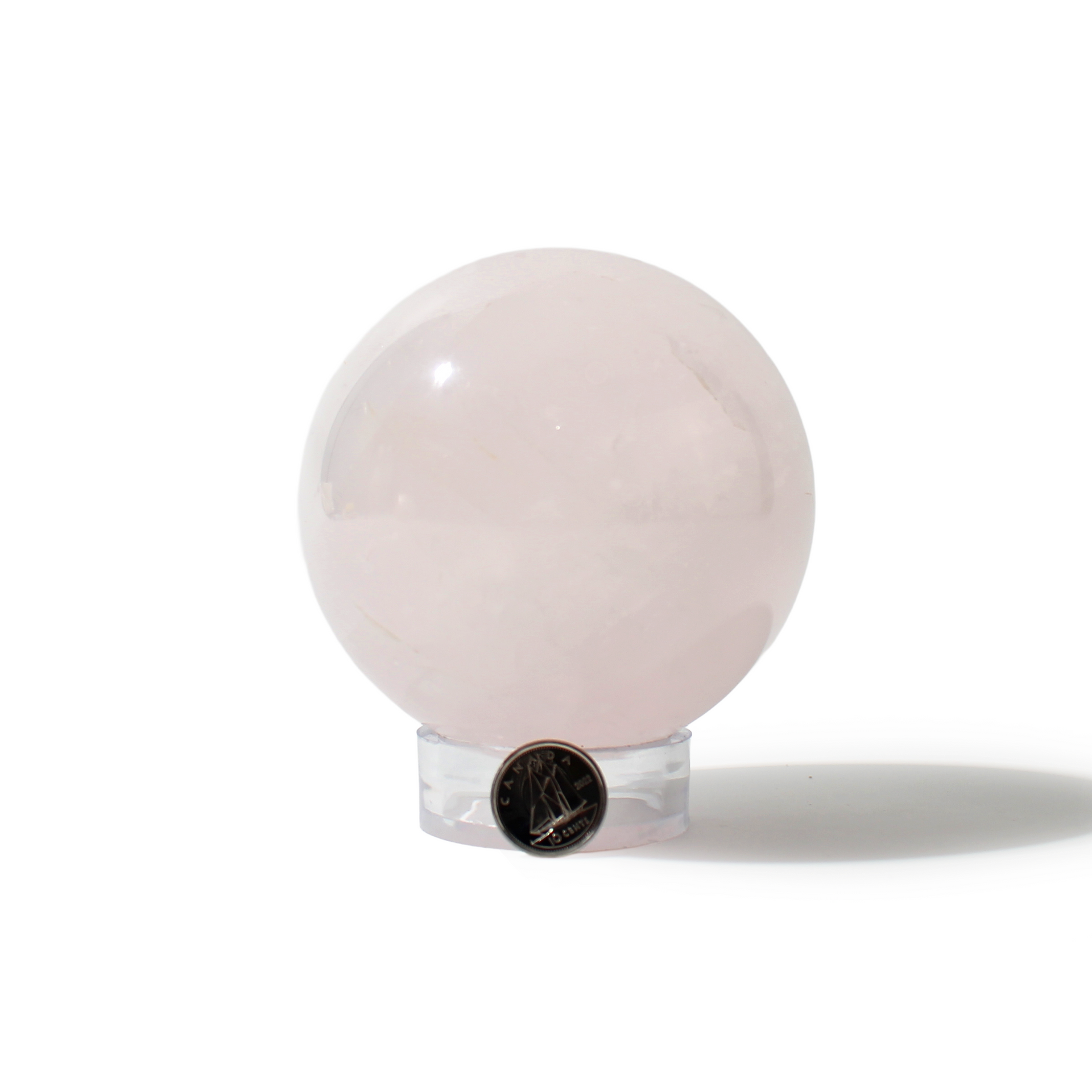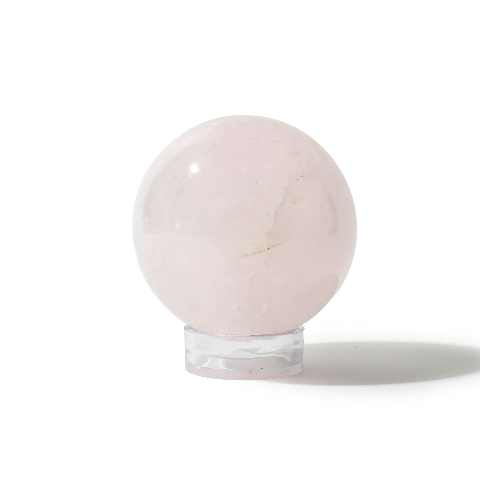 Rose Quartz Sphere Unique #49 - 3 3/8" across and features soft pink tones with a smooth, polished finish. Radiating gentle, loving energy in all directions, it’s ideal for emotional healing and heart-centered spaces.