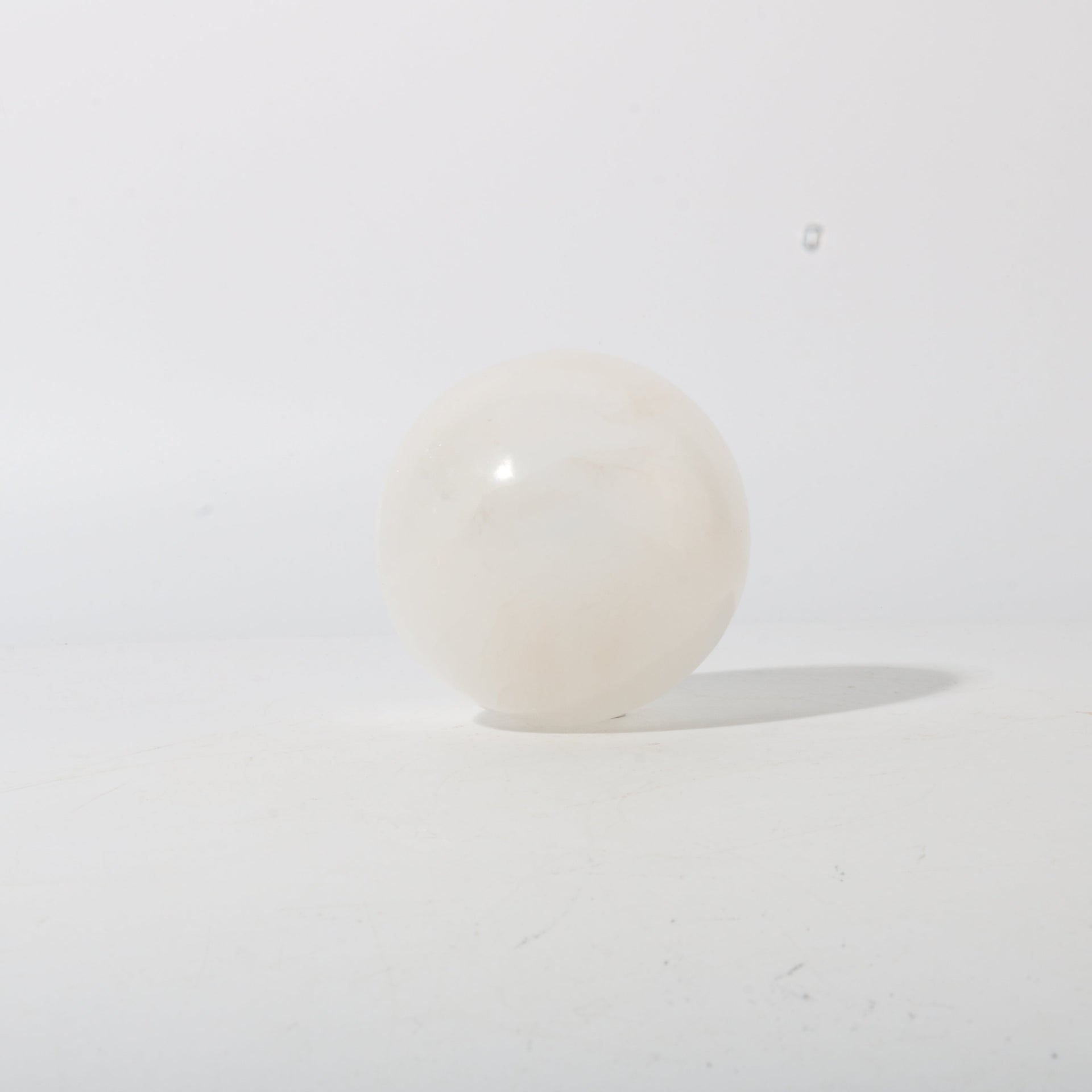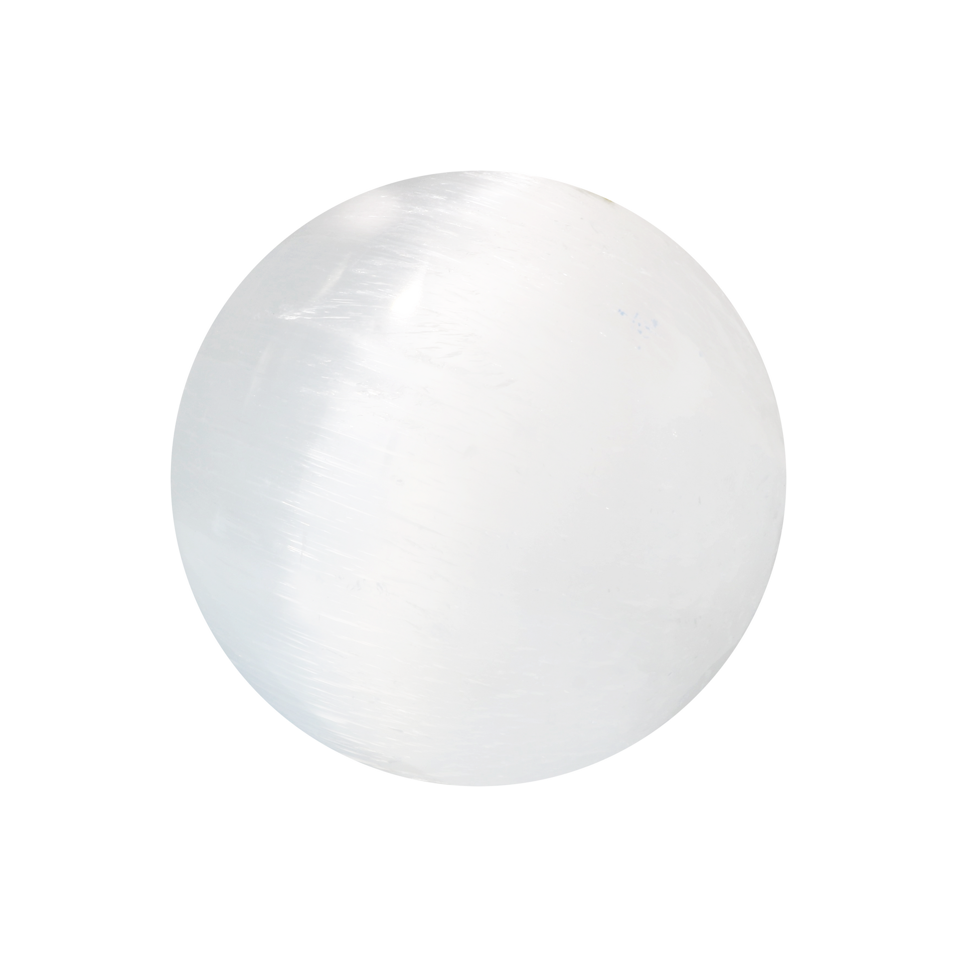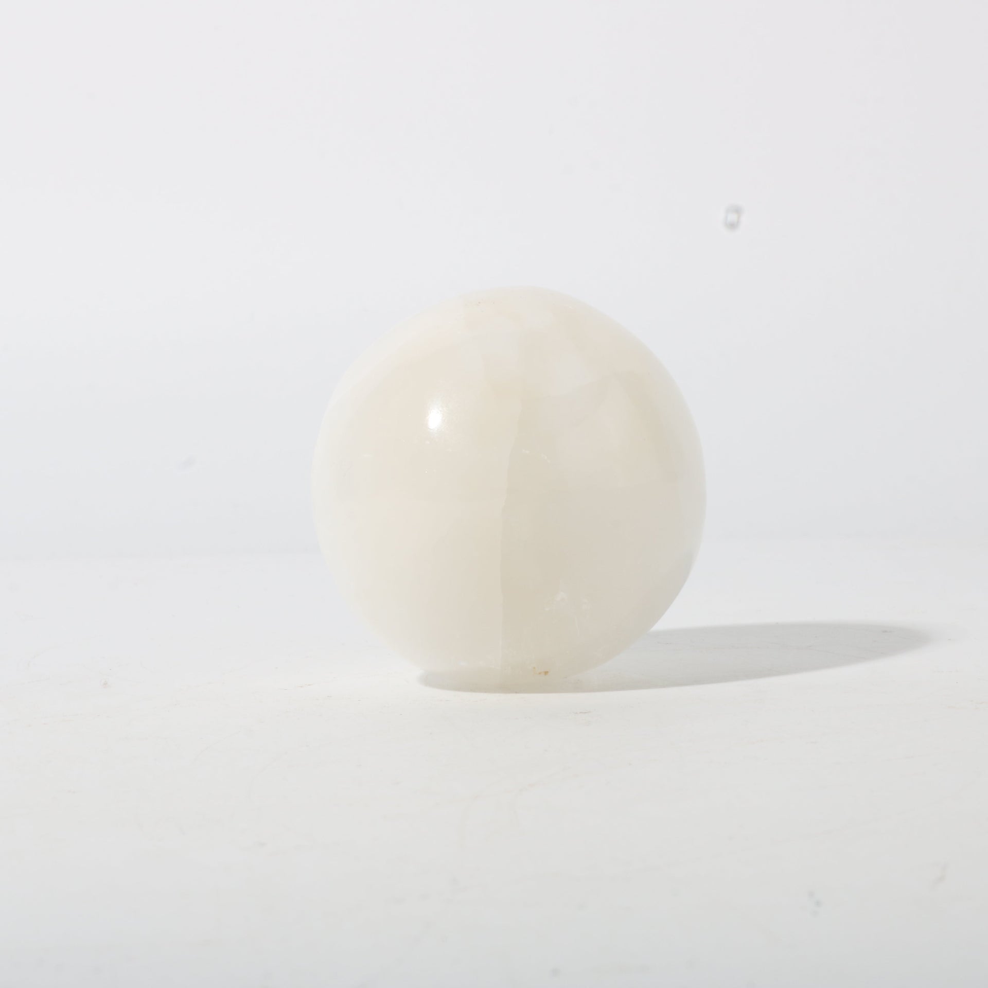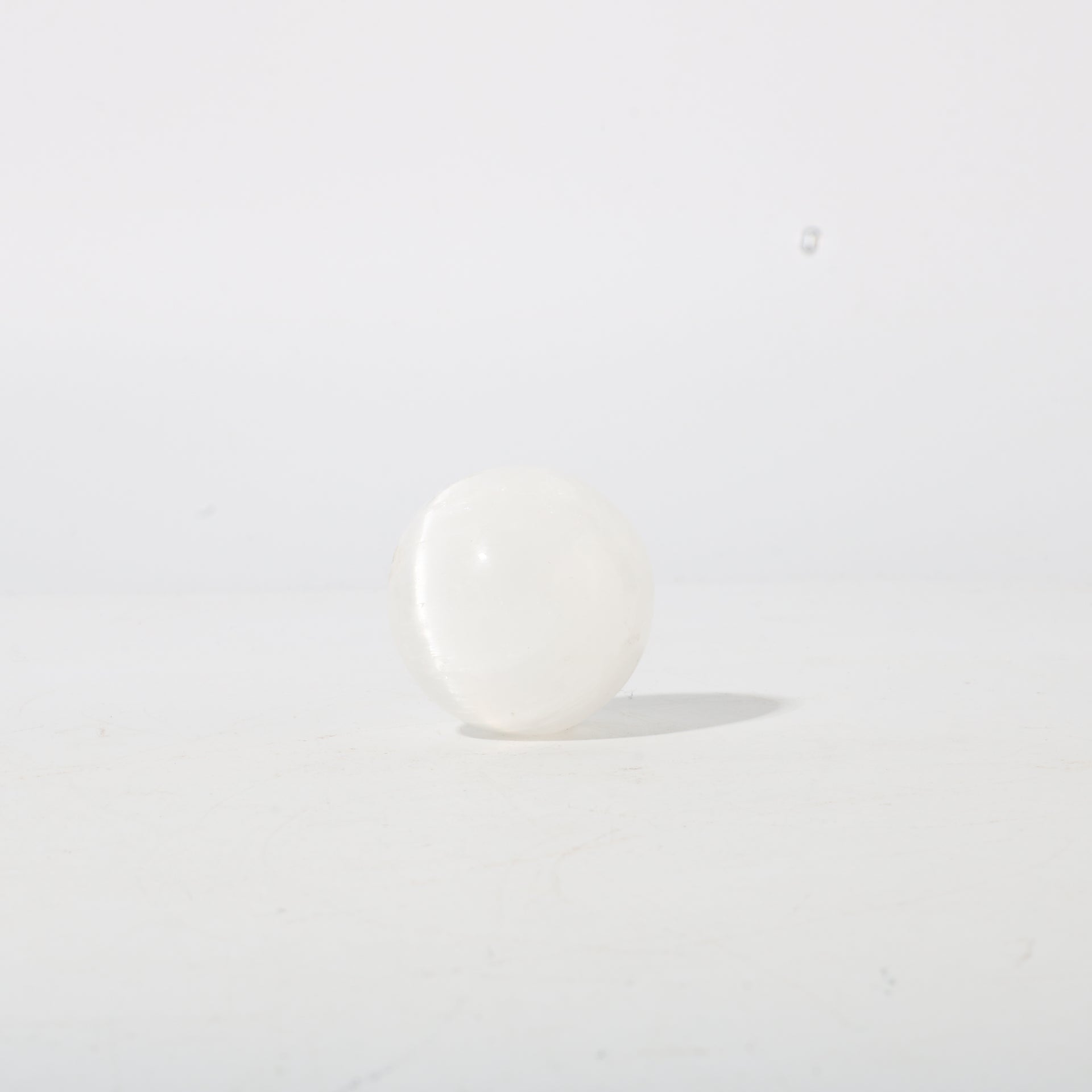 Hand-polished Selenite spheres with a translucent sheen to pearly-white milky tones.