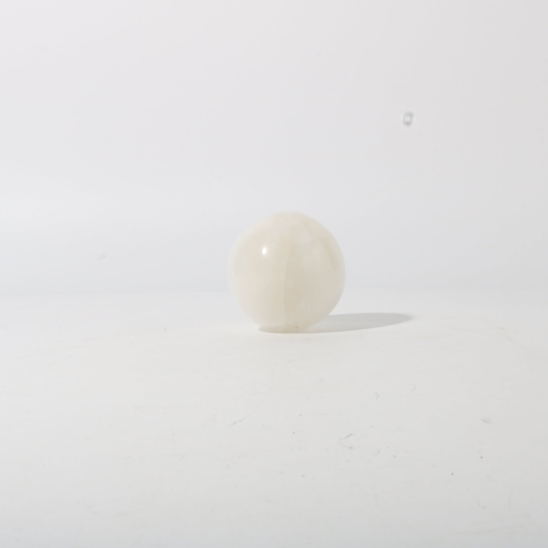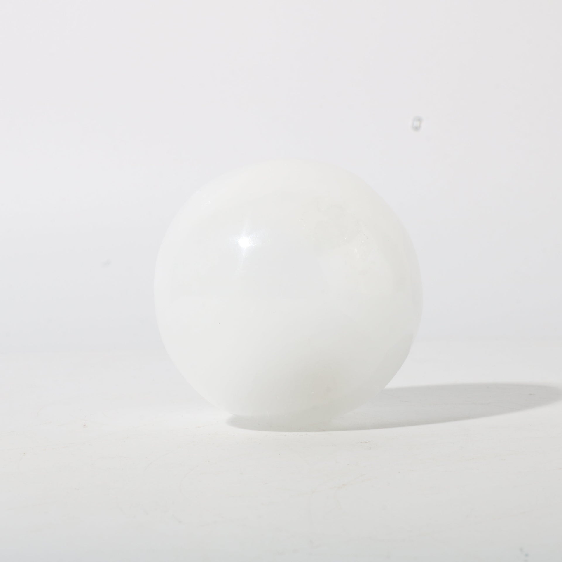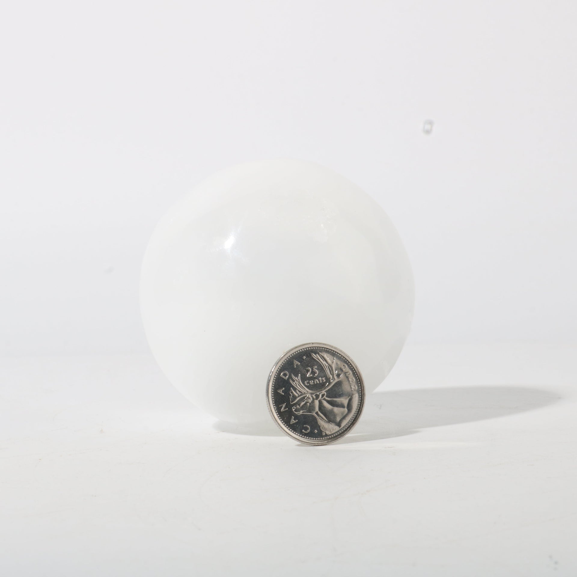Hand-polished Selenite spheres with a translucent sheen to pearly-white milky tones.