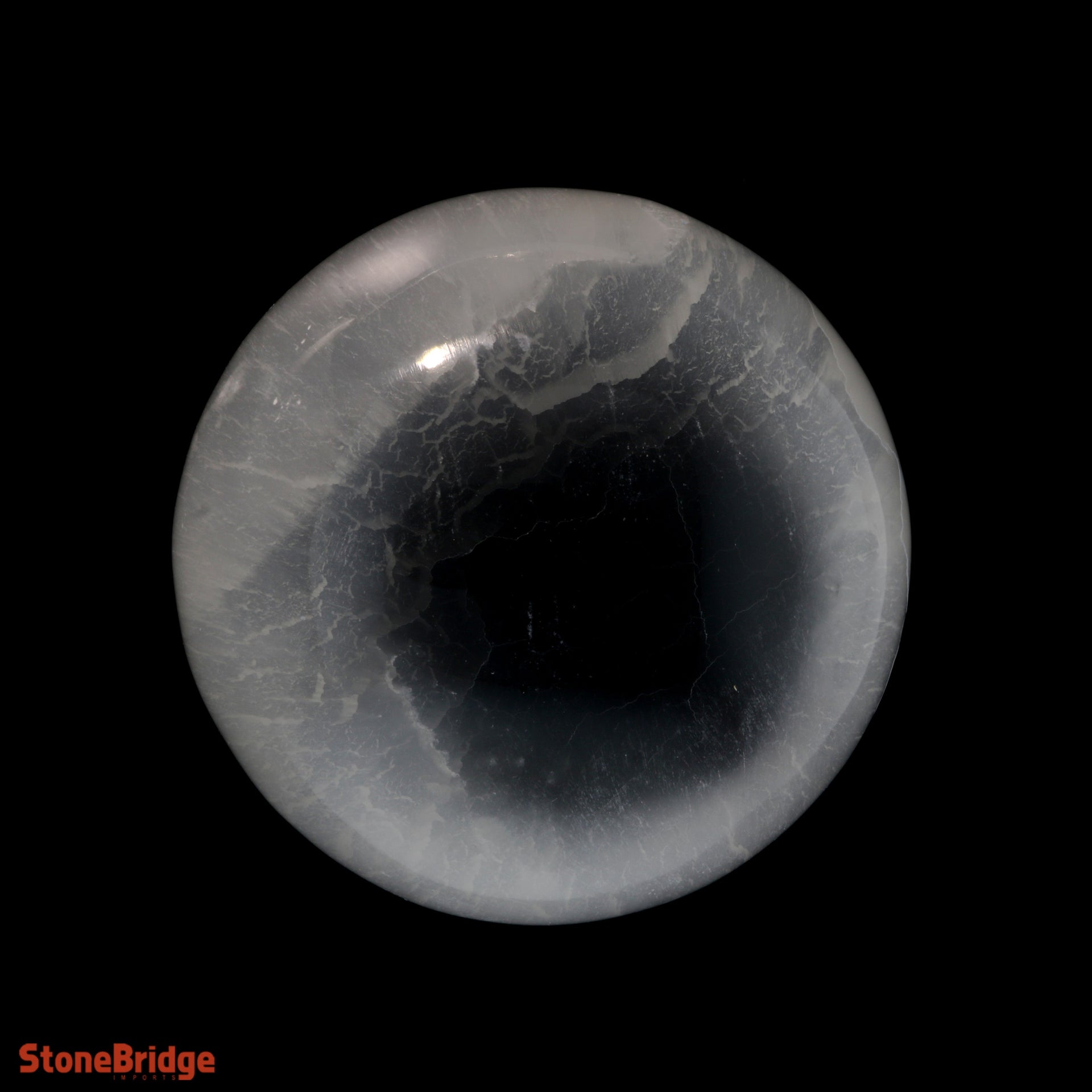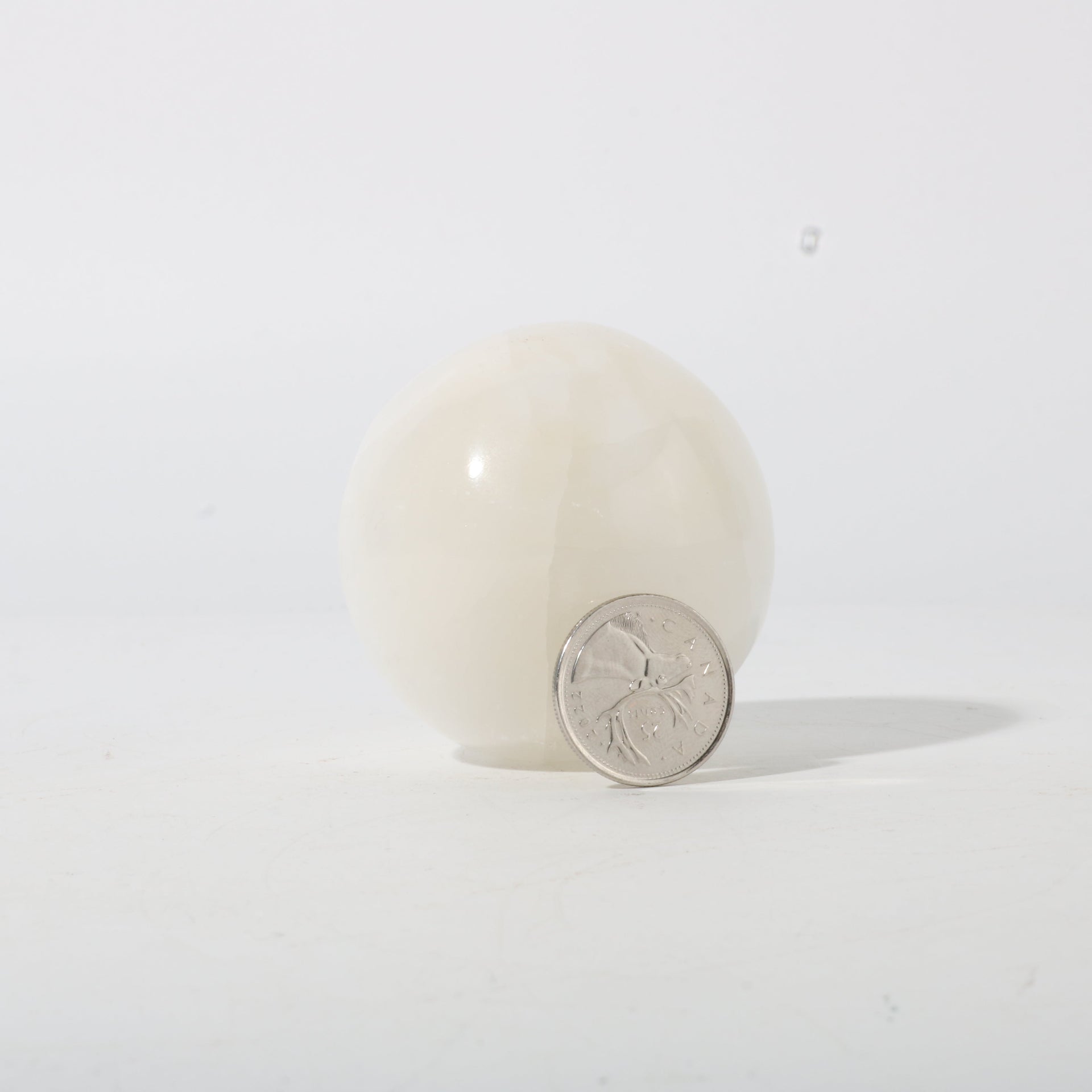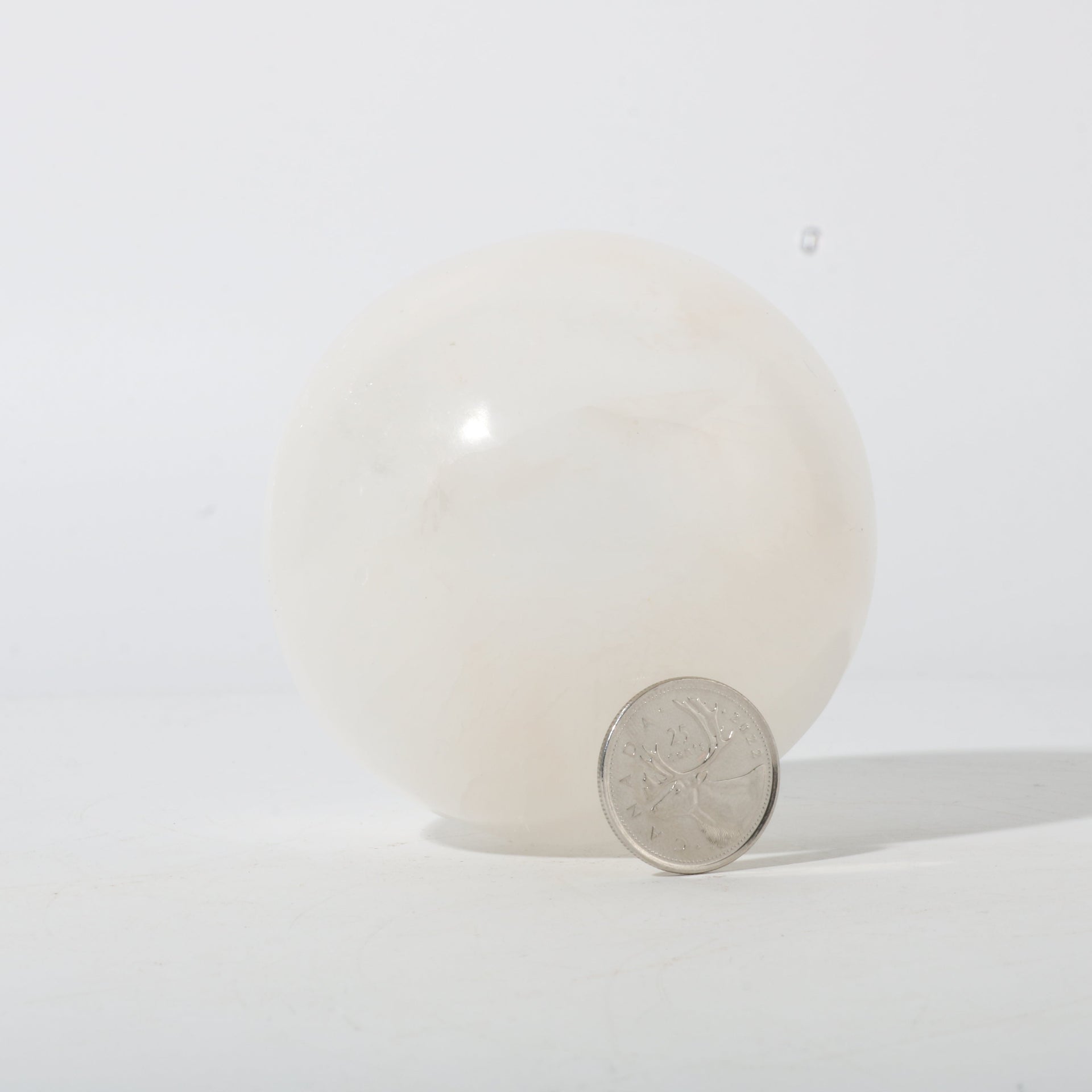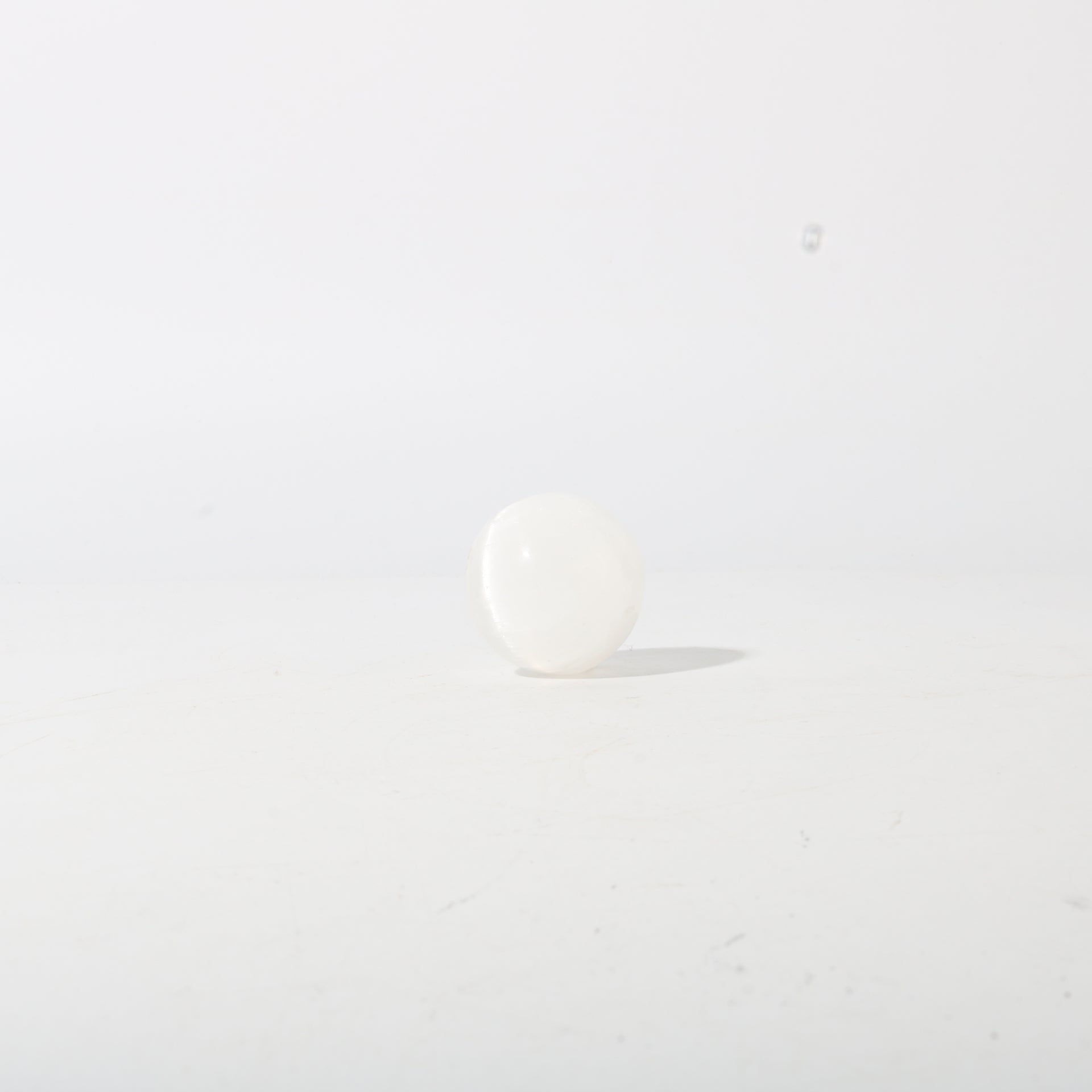 Hand-polished Selenite spheres with a translucent sheen to pearly-white milky tones.