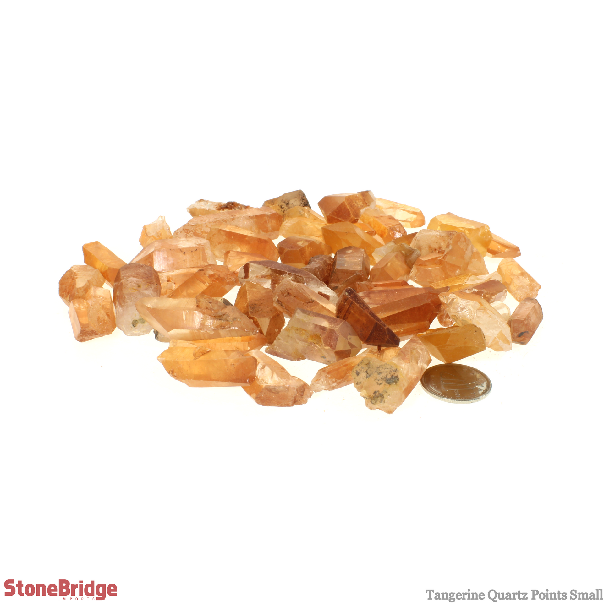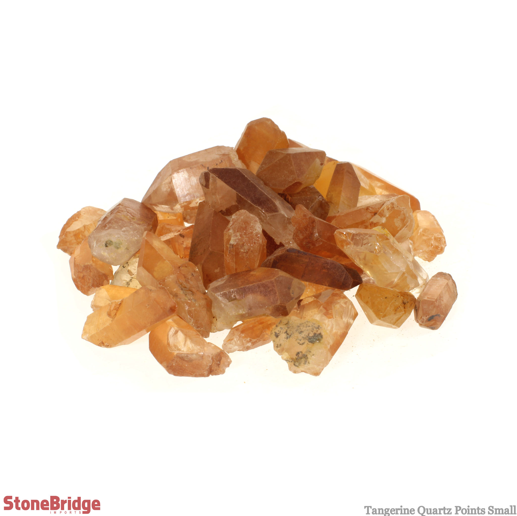 Tangerine Quartz color comes from the inclusions or encrustations of iron. Tangerine Quartz gets its name from its color, In appearance, it ranges from a pale pinkish-orange to a vibrant ruby hue. Points in this bag range from 1” tp 1 ¾” a majority of pieces in this bag will be in this range, but a few pieces may be larger or smaller.