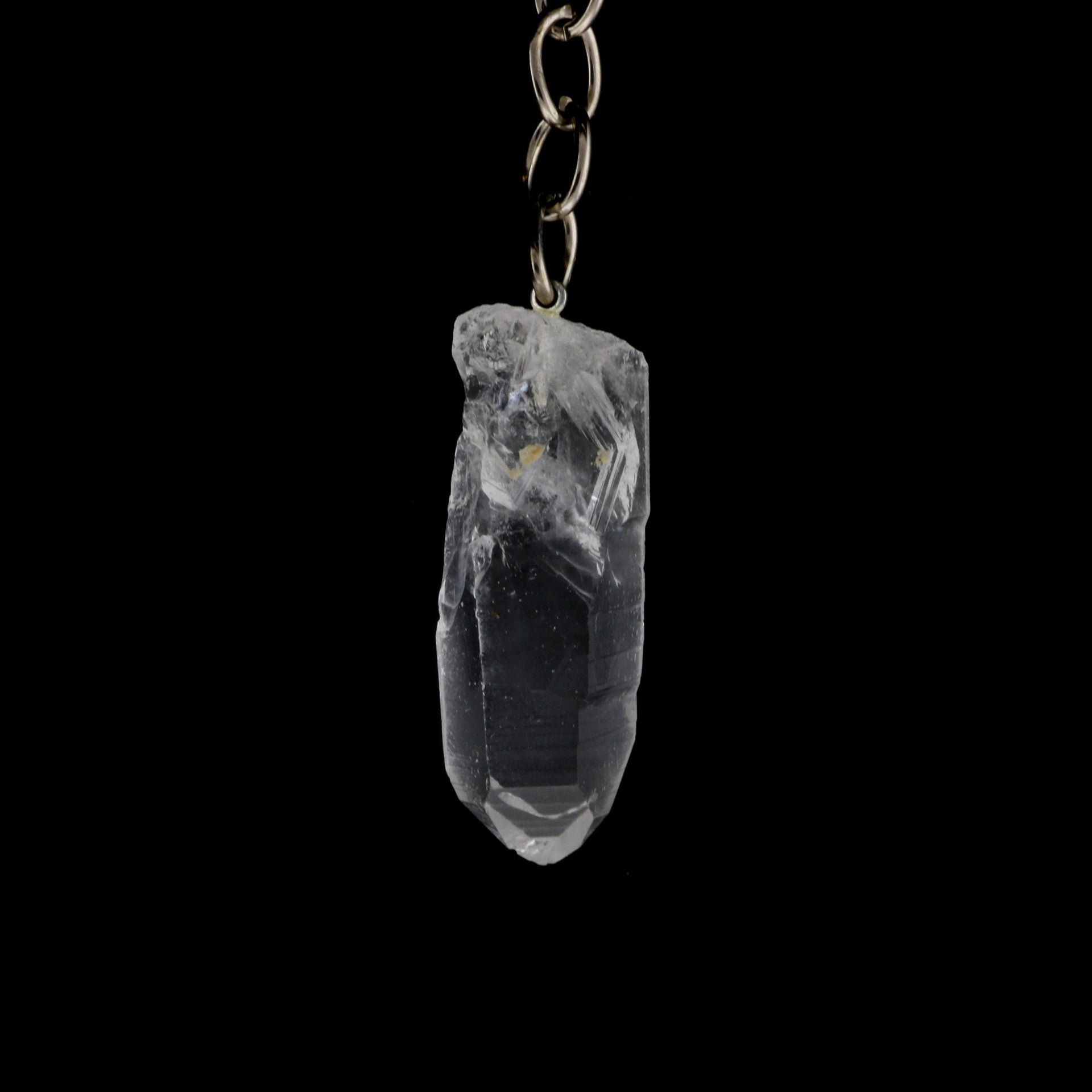 This keychain features a genuine Lemurian Quartz point, renowned for its ladder-like striations that are said to hold the wisdom of the ancient Lemurian civilization. The crystal point is securely attached to a durable key ring, ensuring that this powerful and beautiful tool can be a constant companion in your daily adventures.