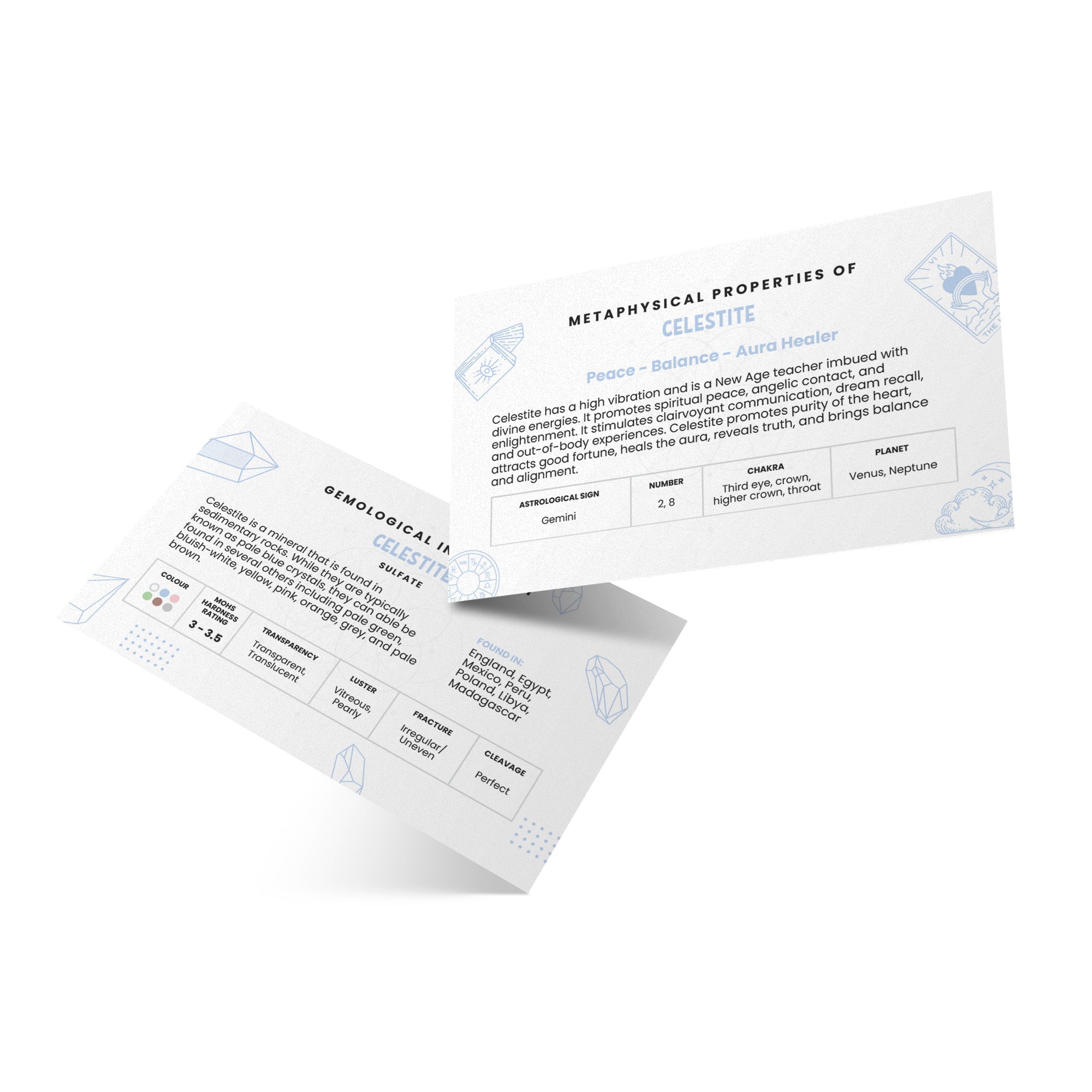 Skip the research with our Stone Meaning Cards - beautifully redesigned and packed with info. This pack contains 10 cards about one stone, including gemological details, metaphysical benefits, astrological ties, and more. Like a "Nutrition Facts" label for crystals, these cards are perfect for collectors, sellers, and spiritual seekers alike. No logos, no sign-ups. Just clear, accessible crystal knowledge at your fingertips.