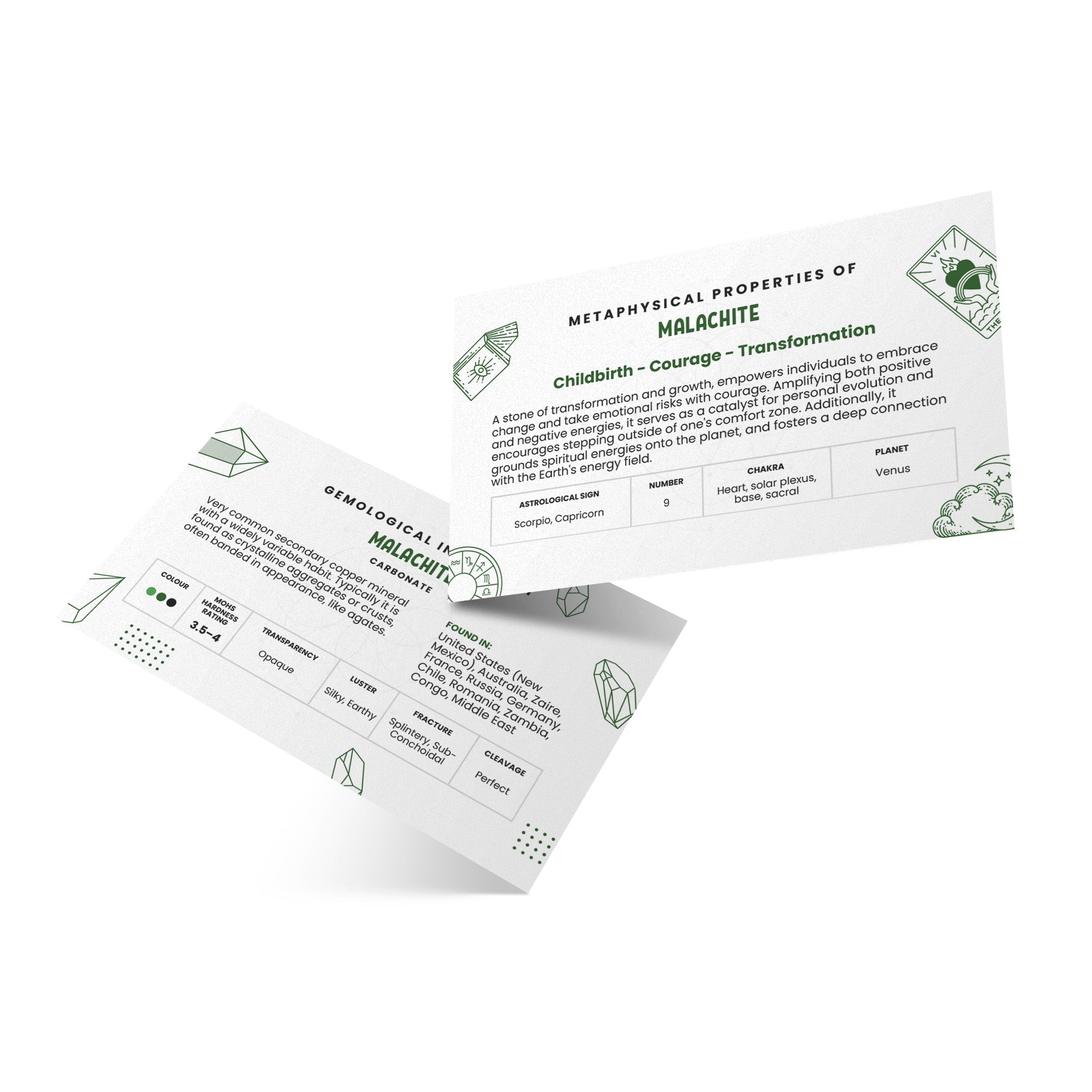 Skip the research with our Stone Meaning Cards - beautifully redesigned and packed with info. This pack contains 10 cards about one stone, including gemological details, metaphysical benefits, astrological ties, and more. Like a "Nutrition Facts" label for crystals, these cards are perfect for collectors, sellers, and spiritual seekers alike. No logos, no sign-ups. Just clear, accessible crystal knowledge at your fingertips.