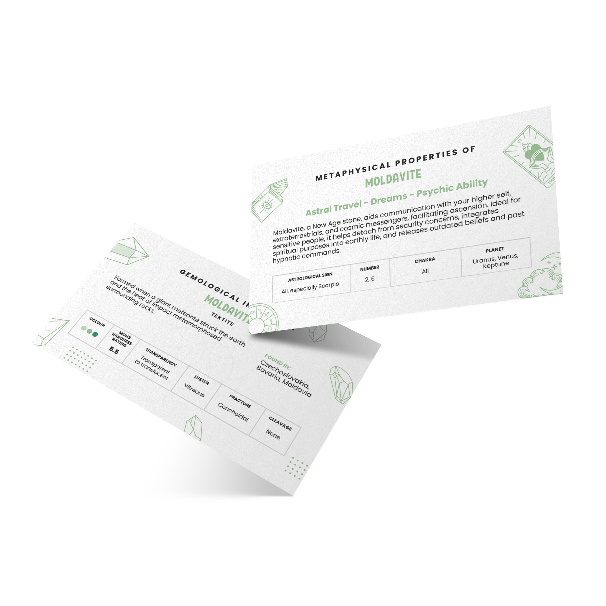 Stone Meaning Cards - Moldavite - 10 Pack