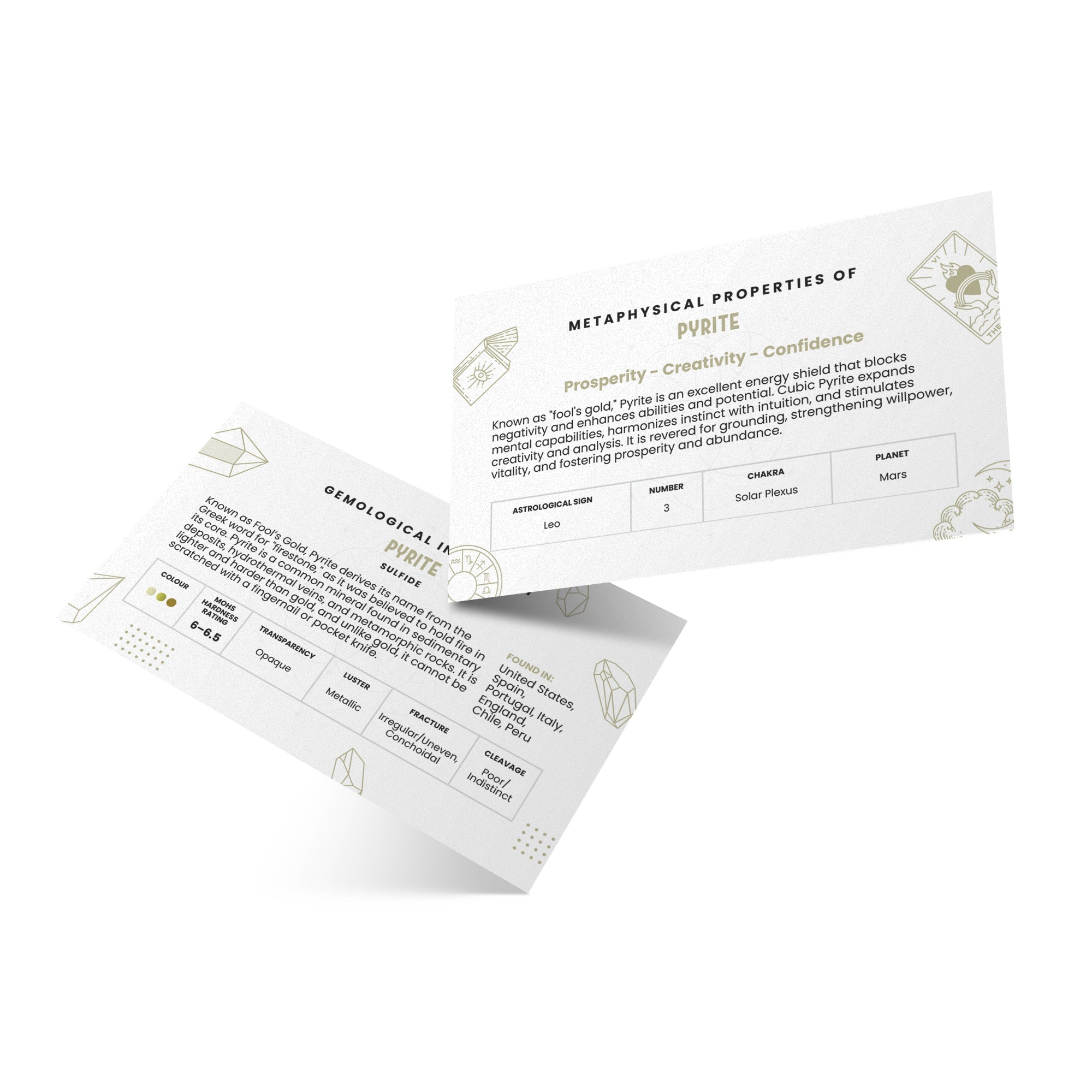 Skip the research with our Stone Meaning Cards - beautifully redesigned and packed with info. This pack contains 10 cards about one stone, including gemological details, metaphysical benefits, astrological ties, and more. Like a "Nutrition Facts" label for crystals, these cards are perfect for collectors, sellers, and spiritual seekers alike. No logos, no sign-ups. Just clear, accessible crystal knowledge at your fingertips.