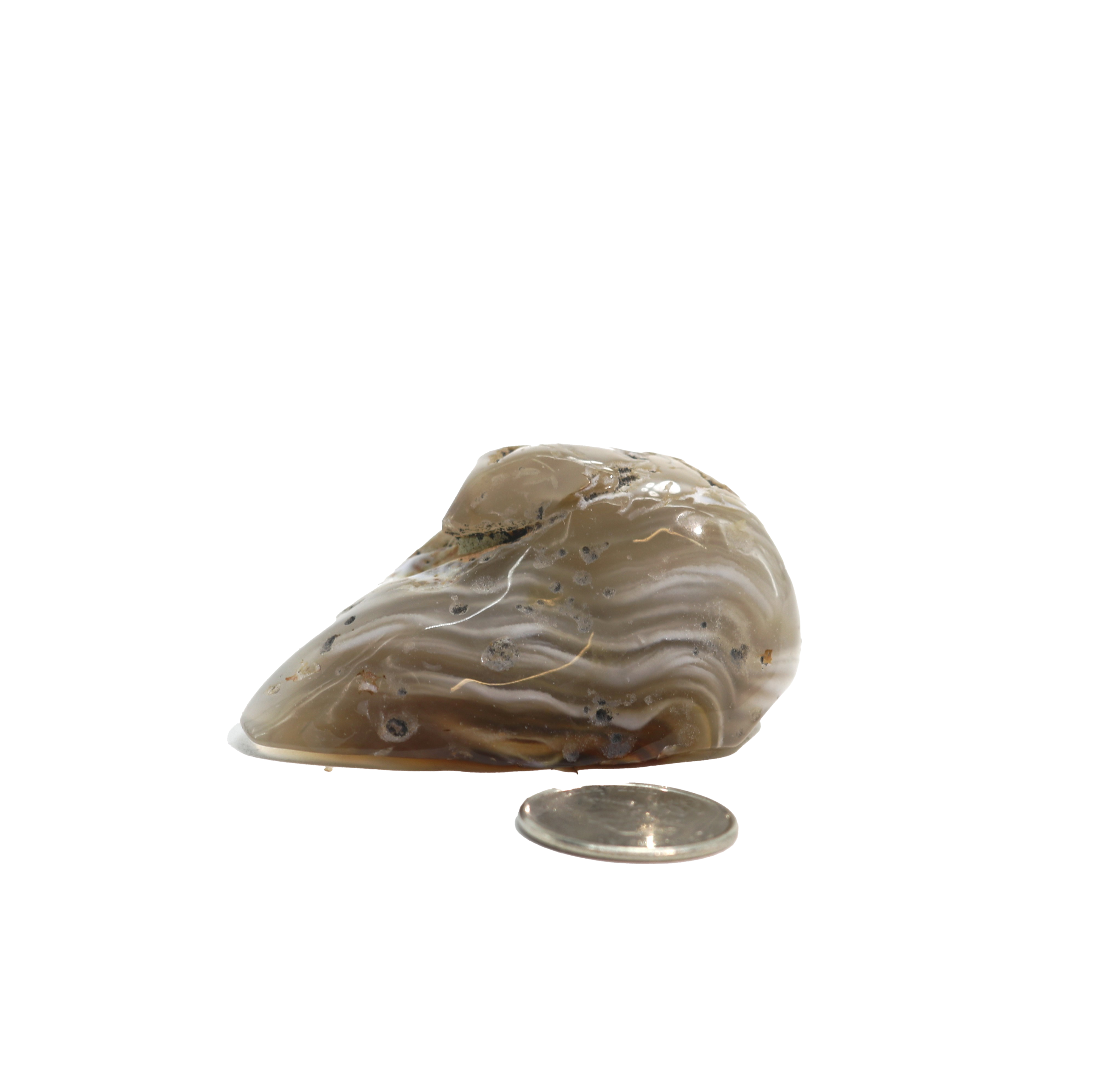 Polished Agate Enhydro Geodes are natural quartz stones with trapped gas bubbles that have filled with water over time, approximately 6 to 8 million years ago.