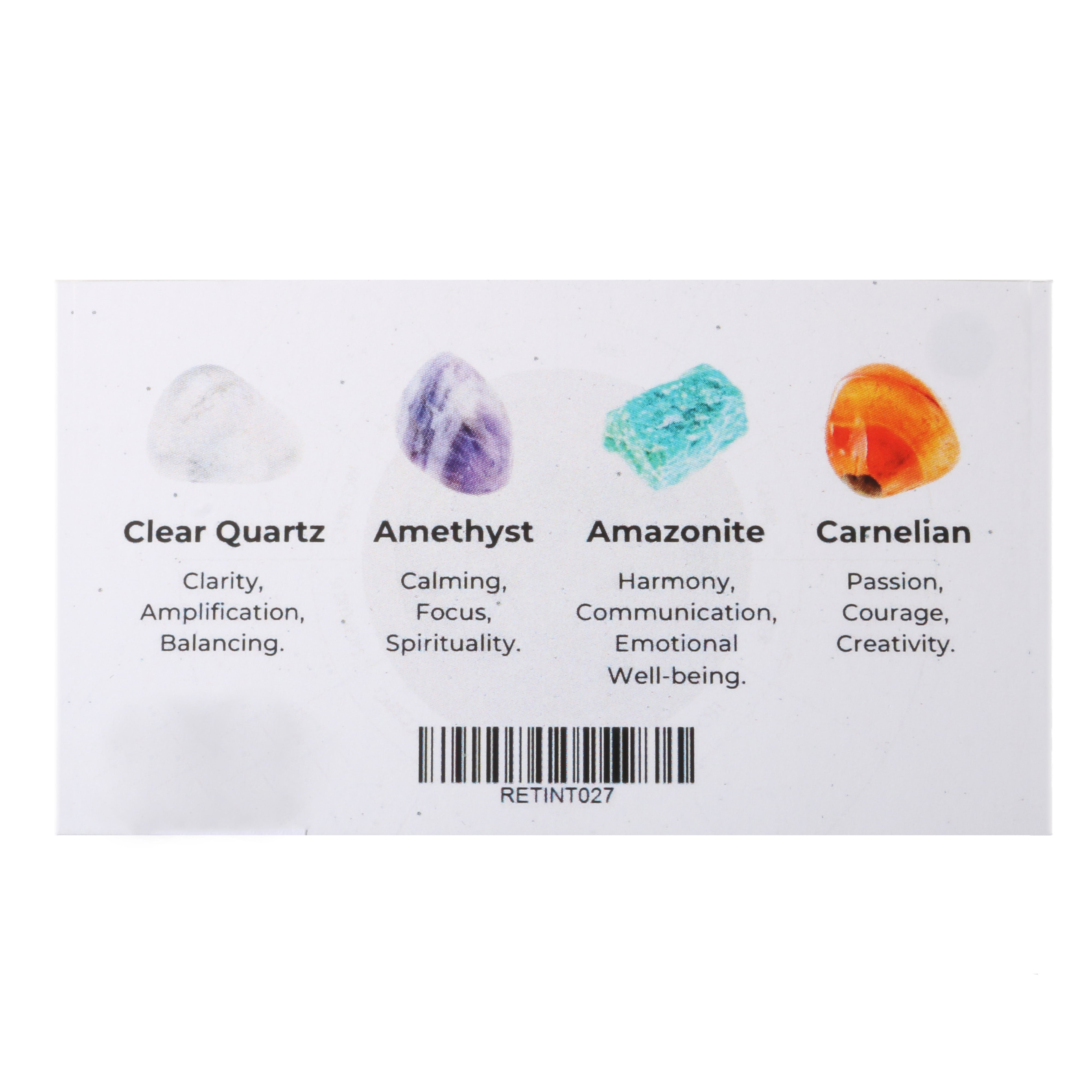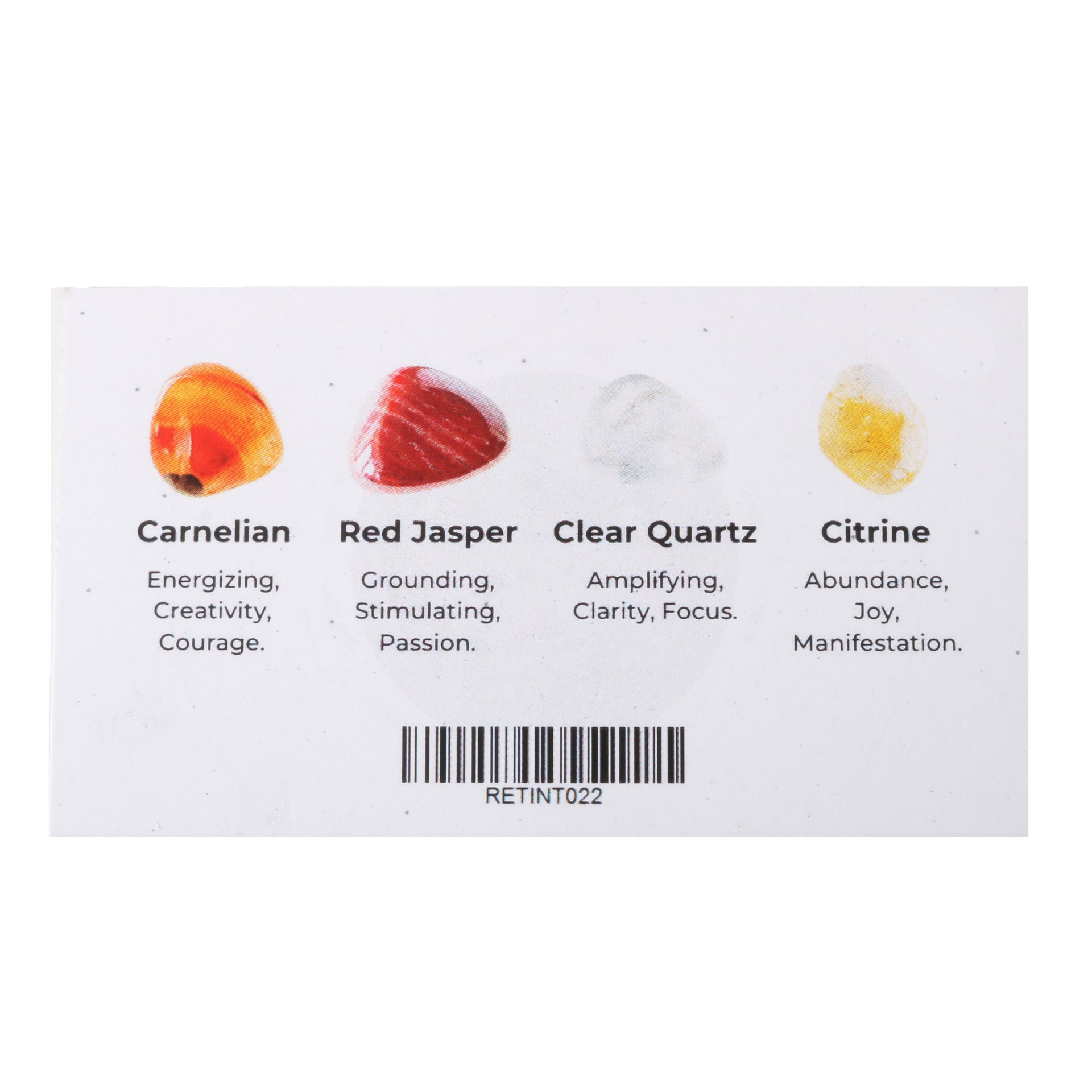Each Zodiac Crystal Collection is a specially curated set of four unique crystals, each chosen for its specific energy and purpose. Each collection comes with a card describing what stones it contains, and what each stone is good for.