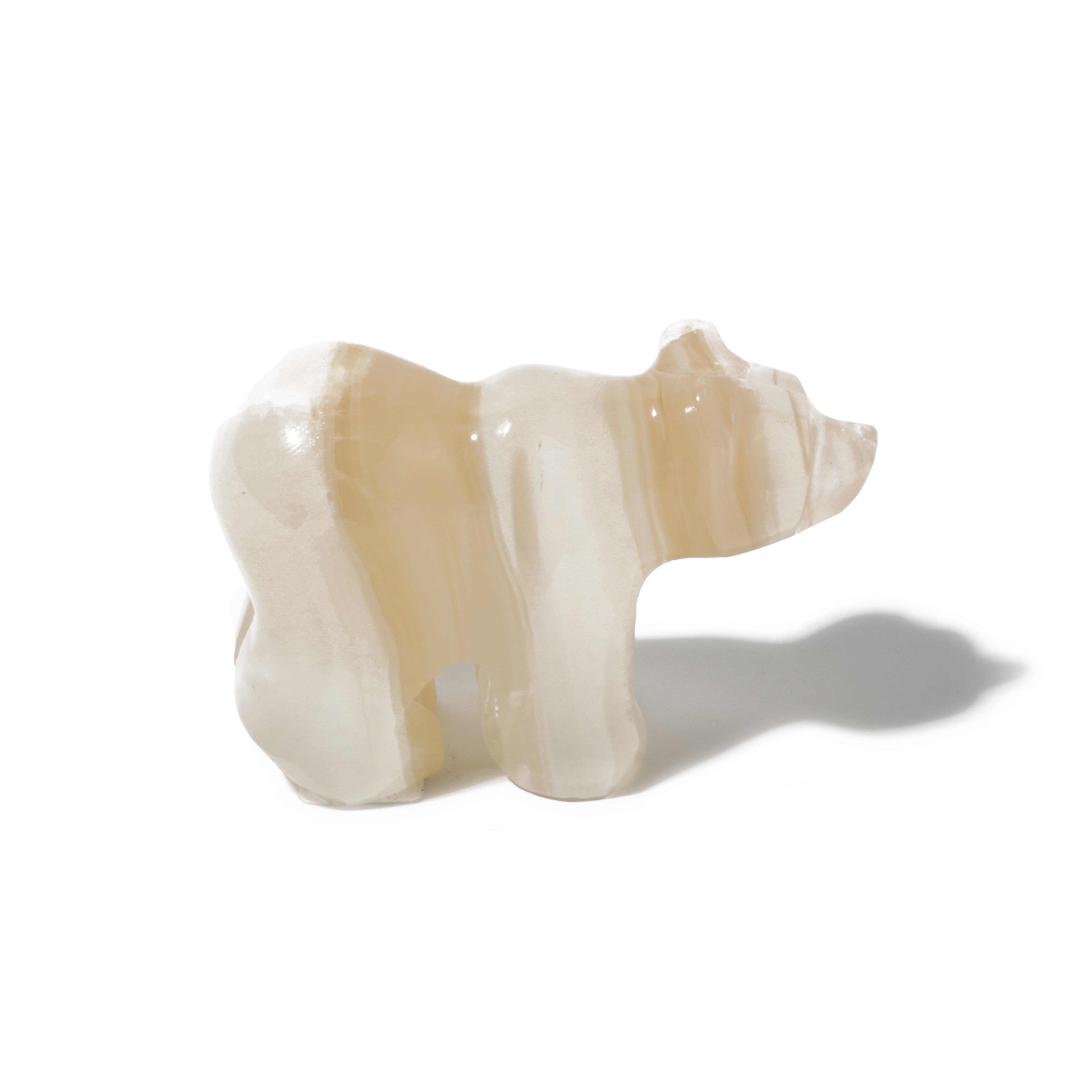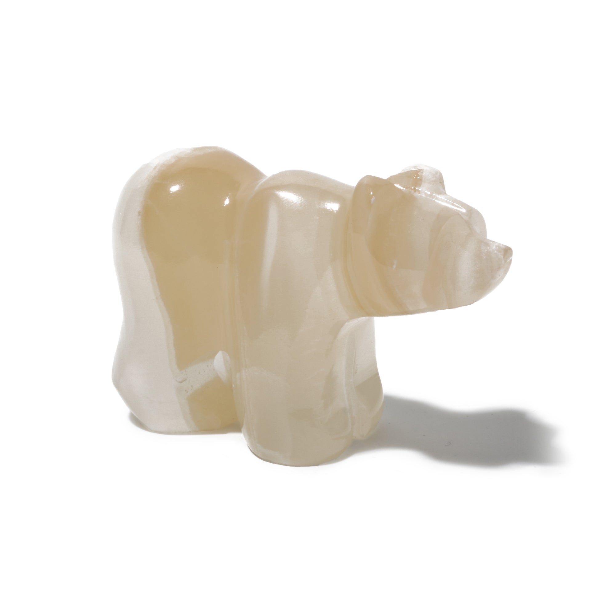 A meticulously crafted piece that symbolizes strength, courage, and stability. Aragonite, a stone known for its earth-healer qualities and ability to ground and center physical energies, is beautifully transformed into the shape of a bear, an animal revered for its power and resilience.