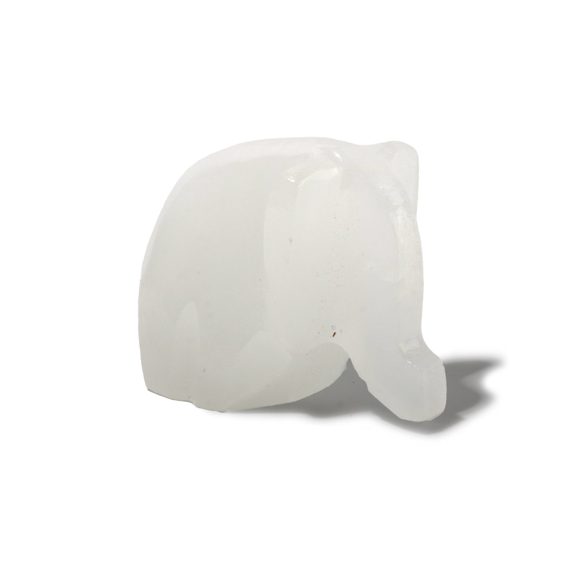 This exquisite piece is meticulously carved from amber aragonite, a stone prized for its warm, comforting hues and powerful grounding properties. The elephant, revered in many cultures for its immense strength, strong family ties, and long memory, is beautifully rendered in this carving, embodying the qualities of stability and resilience.