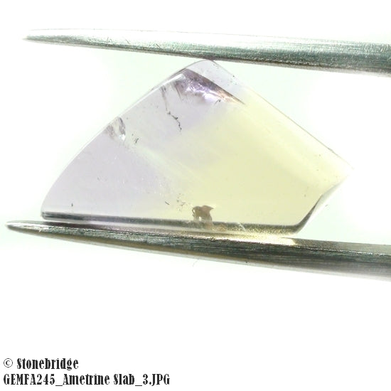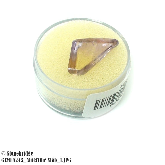 Ametrine Slab All hand faceted by talented artisans in Brazil. Perfect for jewellery making, wrapping and gemstone collections! Unique products brought to you by The Rock Space. Weight: 6ct Length: 1.9cm Width: 1cm Depth: