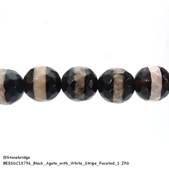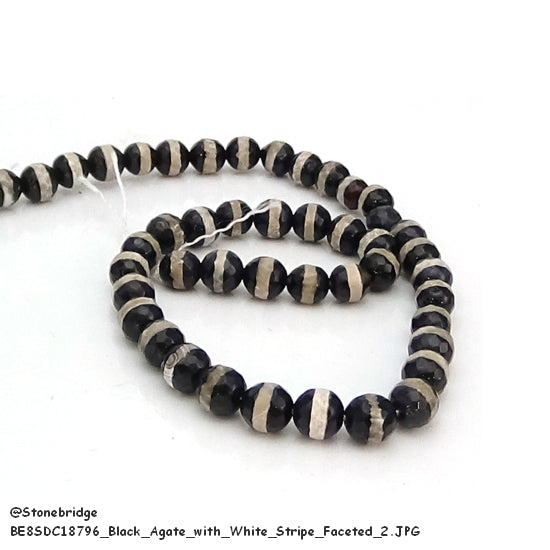 Black Agate With White Stripe Faceted - Round Strand 15" - 8mm (Enhanced)