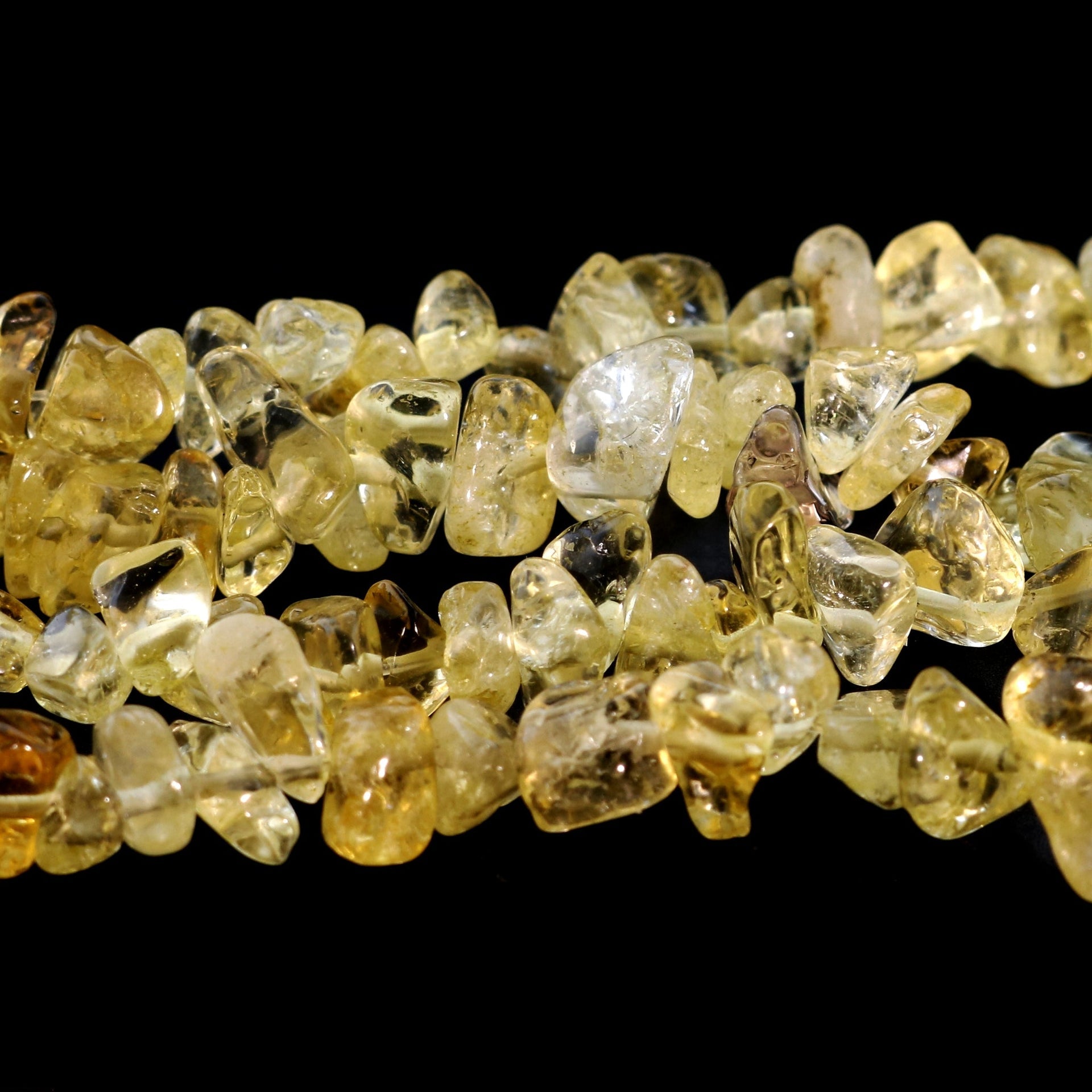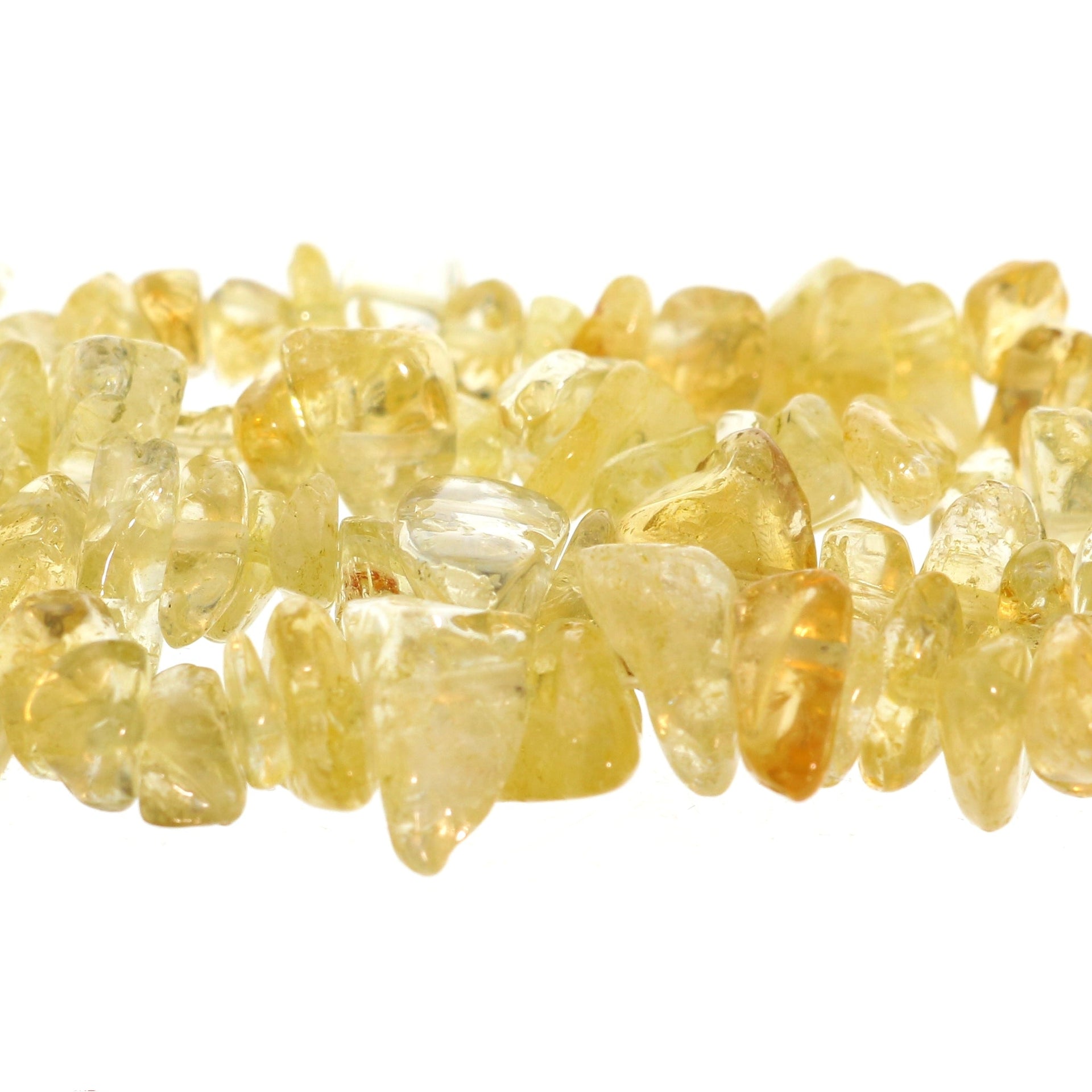Citrine is associated with the solar plexus chakra, believed to boost motivation, attract wealth, and promote emotional clarity. These chip strands add a bright and uplifting touch to any jewelry or crystal collection.