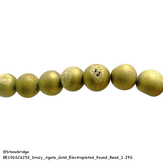 Wholesale prices on Druzy Agate Gold Electroplated - Round Bead 7” strand - 10mm