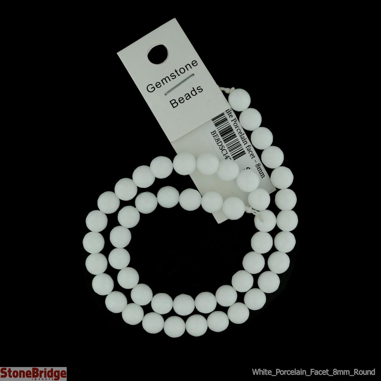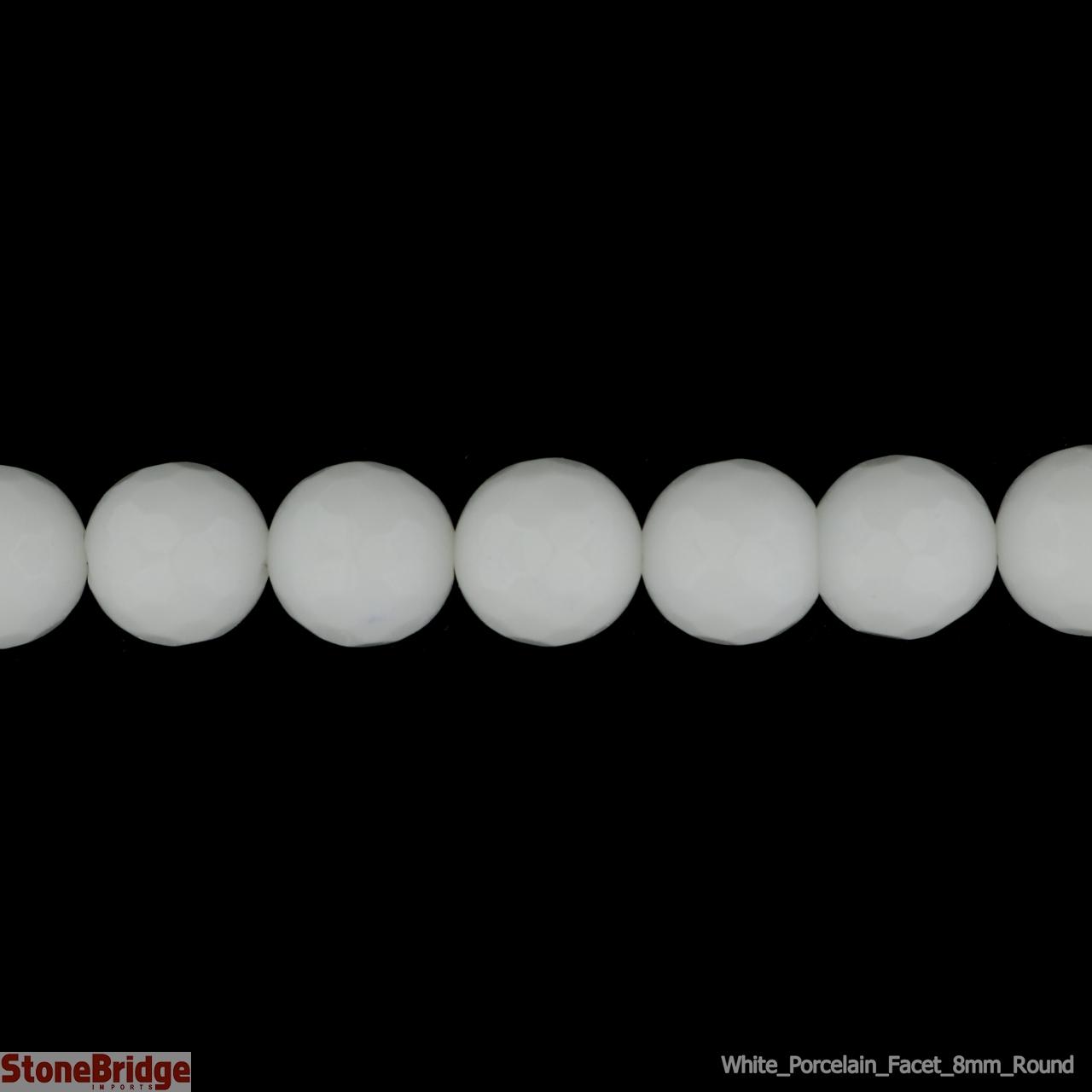 White Porcelain Faceted - Round Strand 15" - 8mm