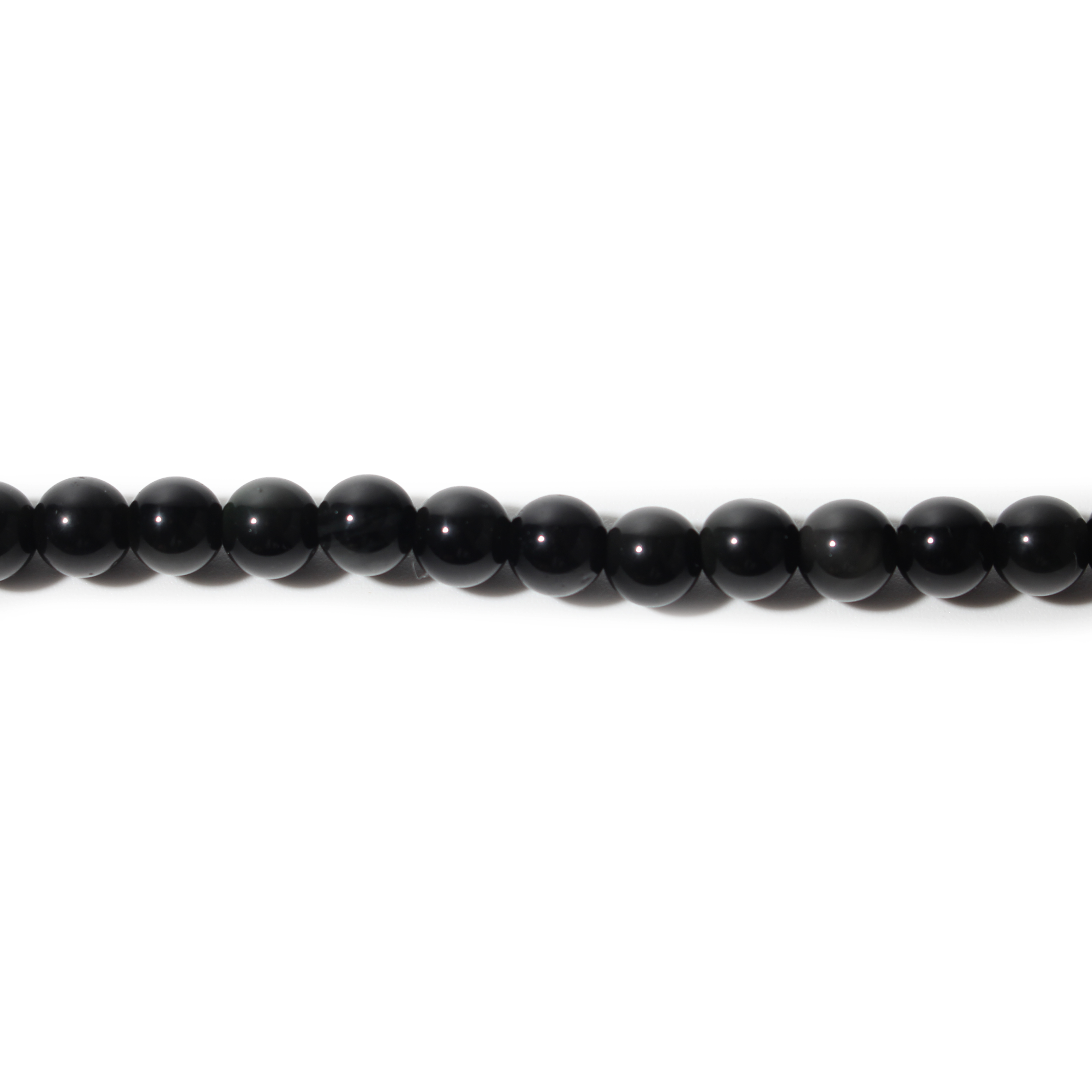 This Rainbow Obsidian Round Strand features deep black beads with subtle flashes of iridescent colors. The natural sheen creates a beautiful play of color as light hits each bead.