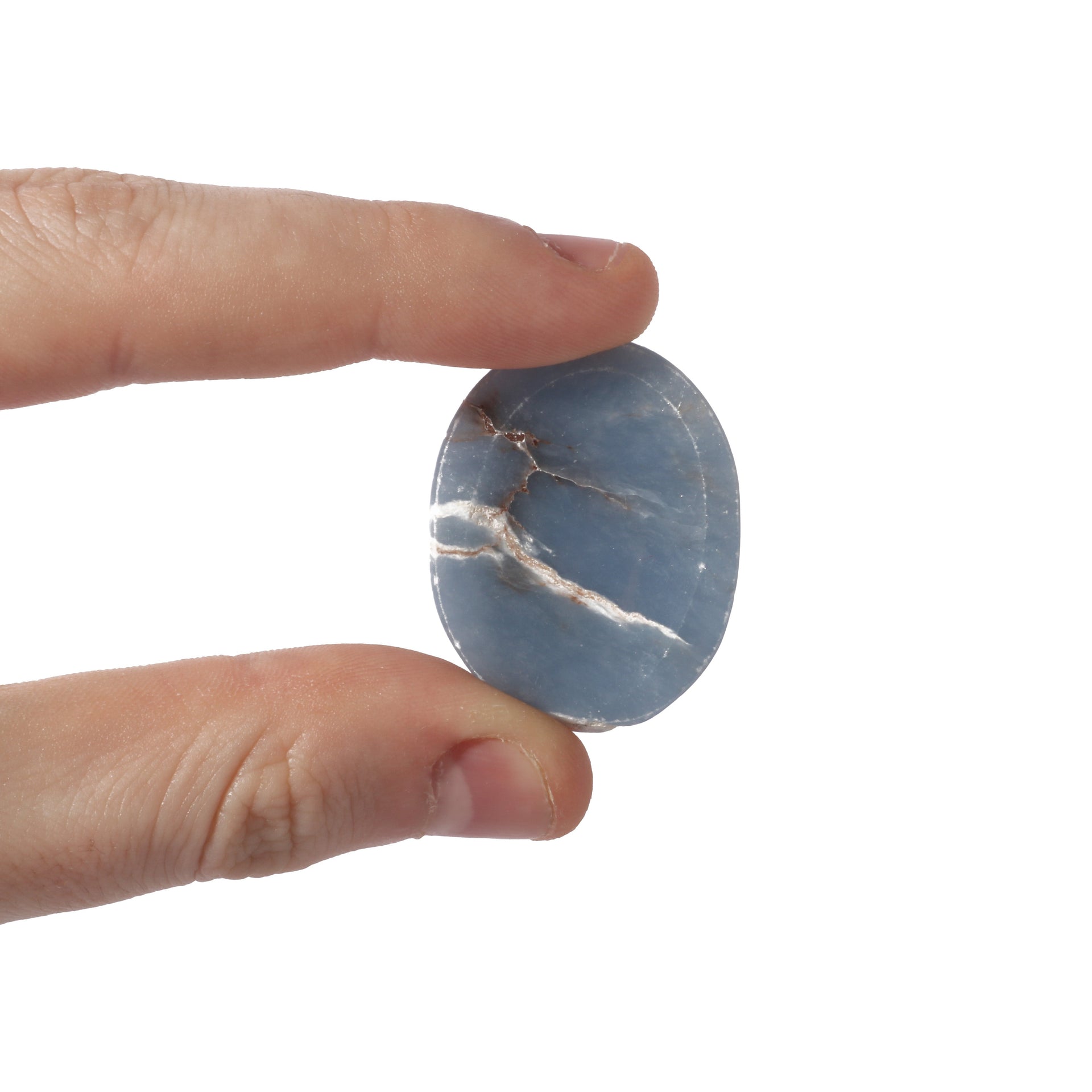Find peace and calm in your palm with this beautifully smooth Angelite Worry Stone, perfect for stress relief and meditation.