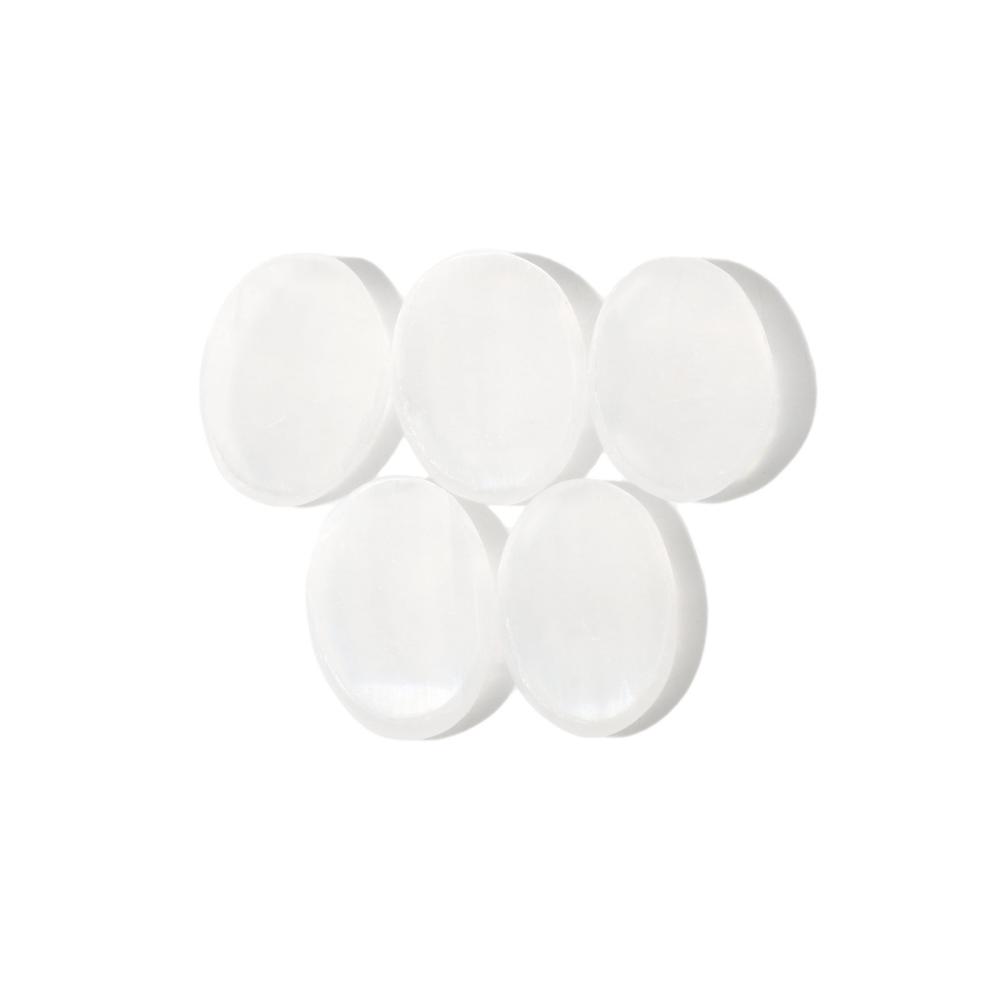 This pack includes five polished Selenite worry stones, perfect for clearing energy and promoting mental clarity.