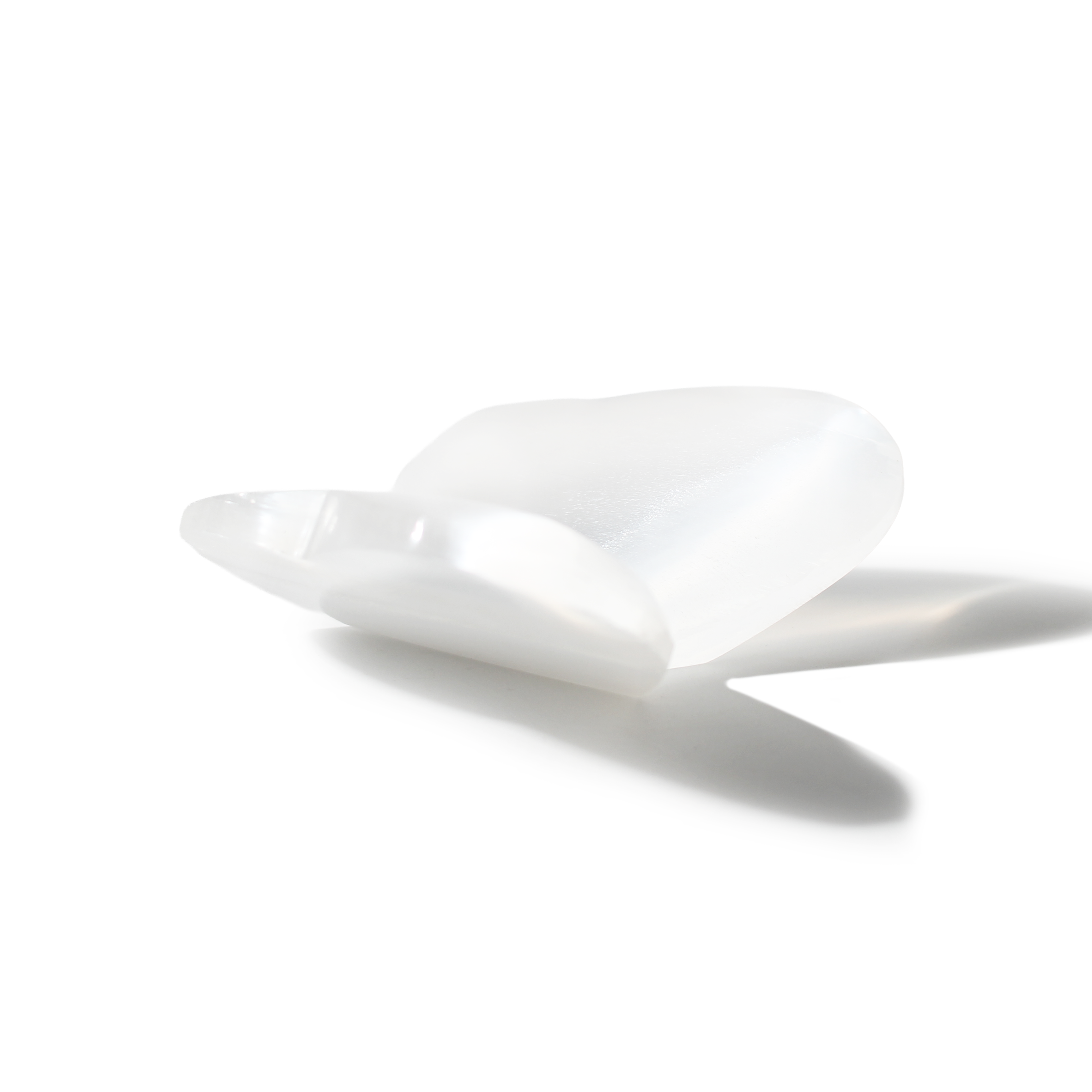 Milky white with soft, glowing wings carved in gentle curves. Light caught in motion.