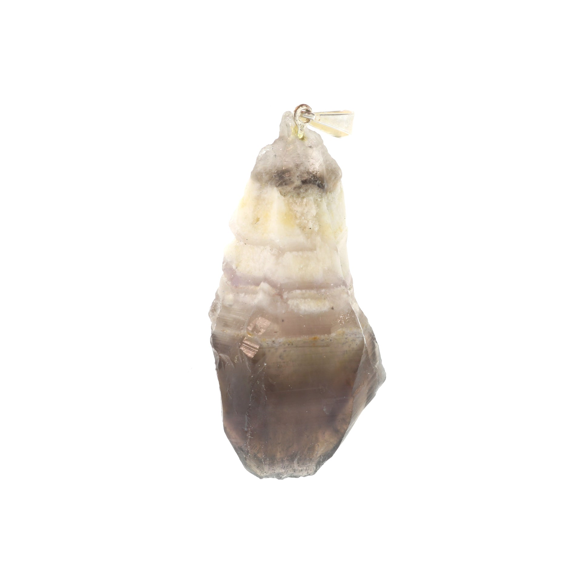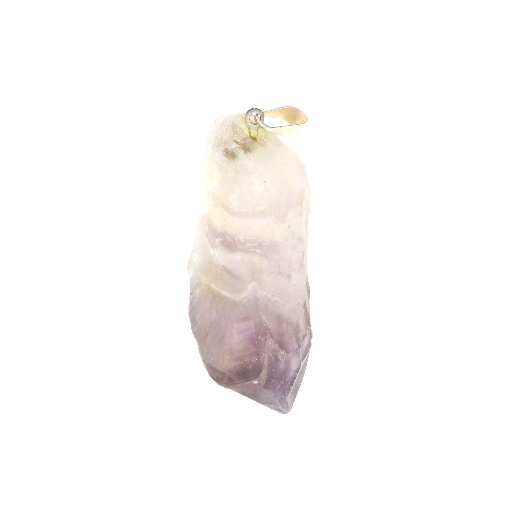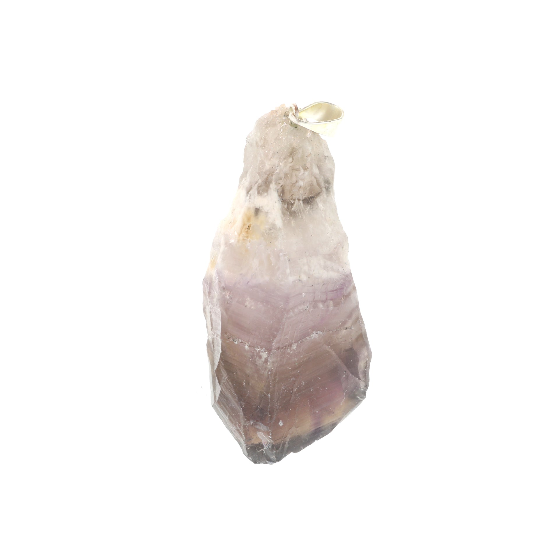 Handcrafted freeform polished Amethyst Chevron point, suspended from a bail to form a pendant.