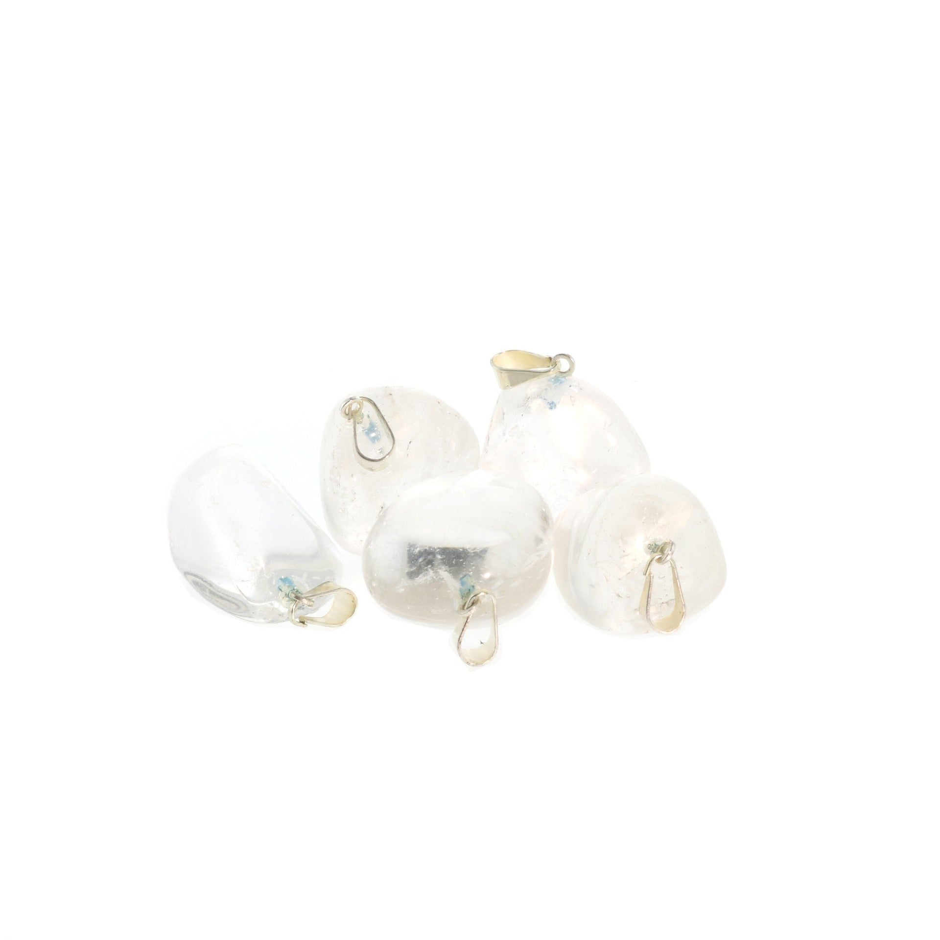 Subtle yet charming, These tumbled Clear Quartz stones come in a bag of five and are adorned with a silver metal bail. With these pendants, you can create a stylish look for your jewellery.