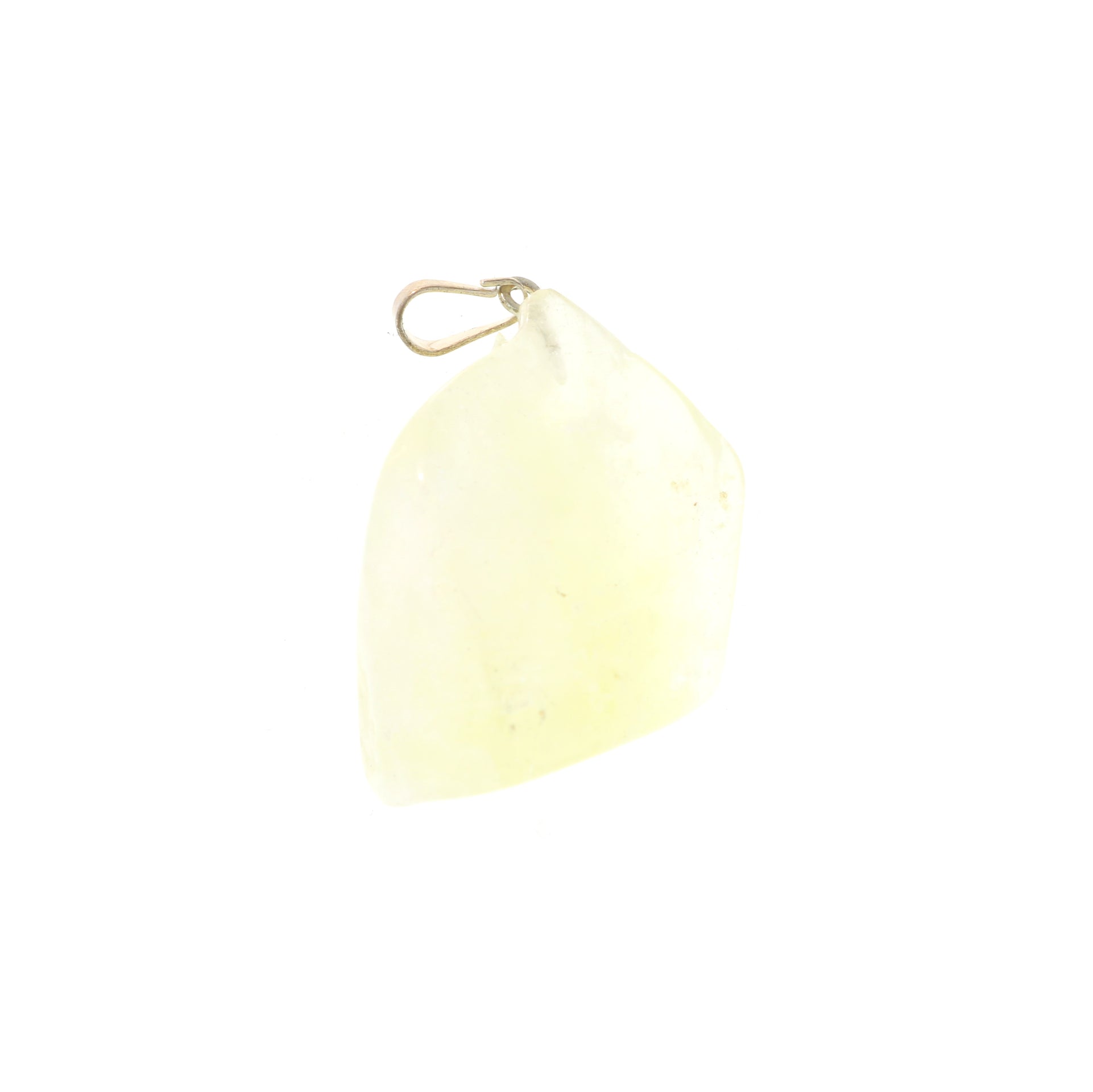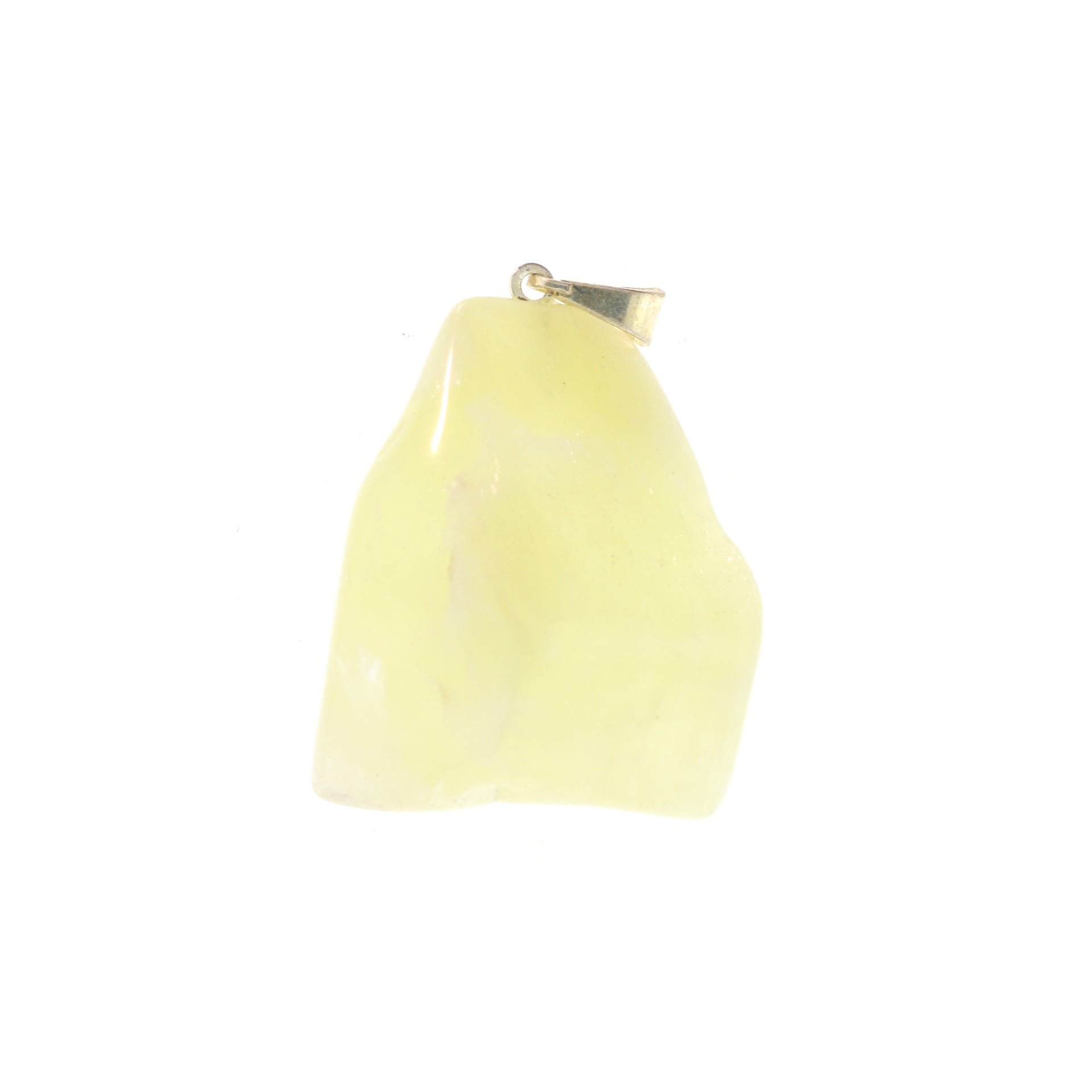 Handcrafted freeform polished Sulfur, suspended from a metal bail to form a pendant.