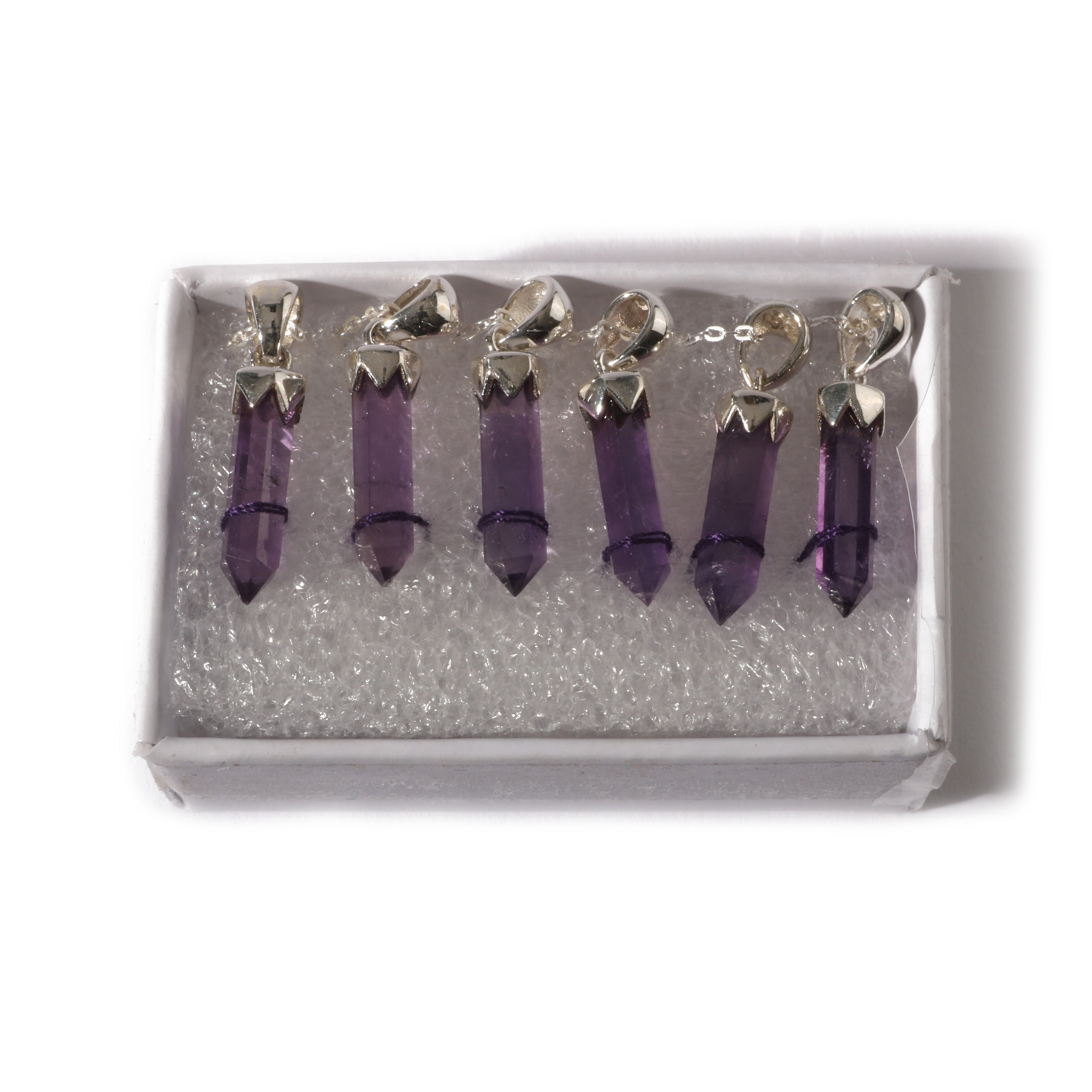 Amethyst Point Sterling Silver Pendant - 6 pack