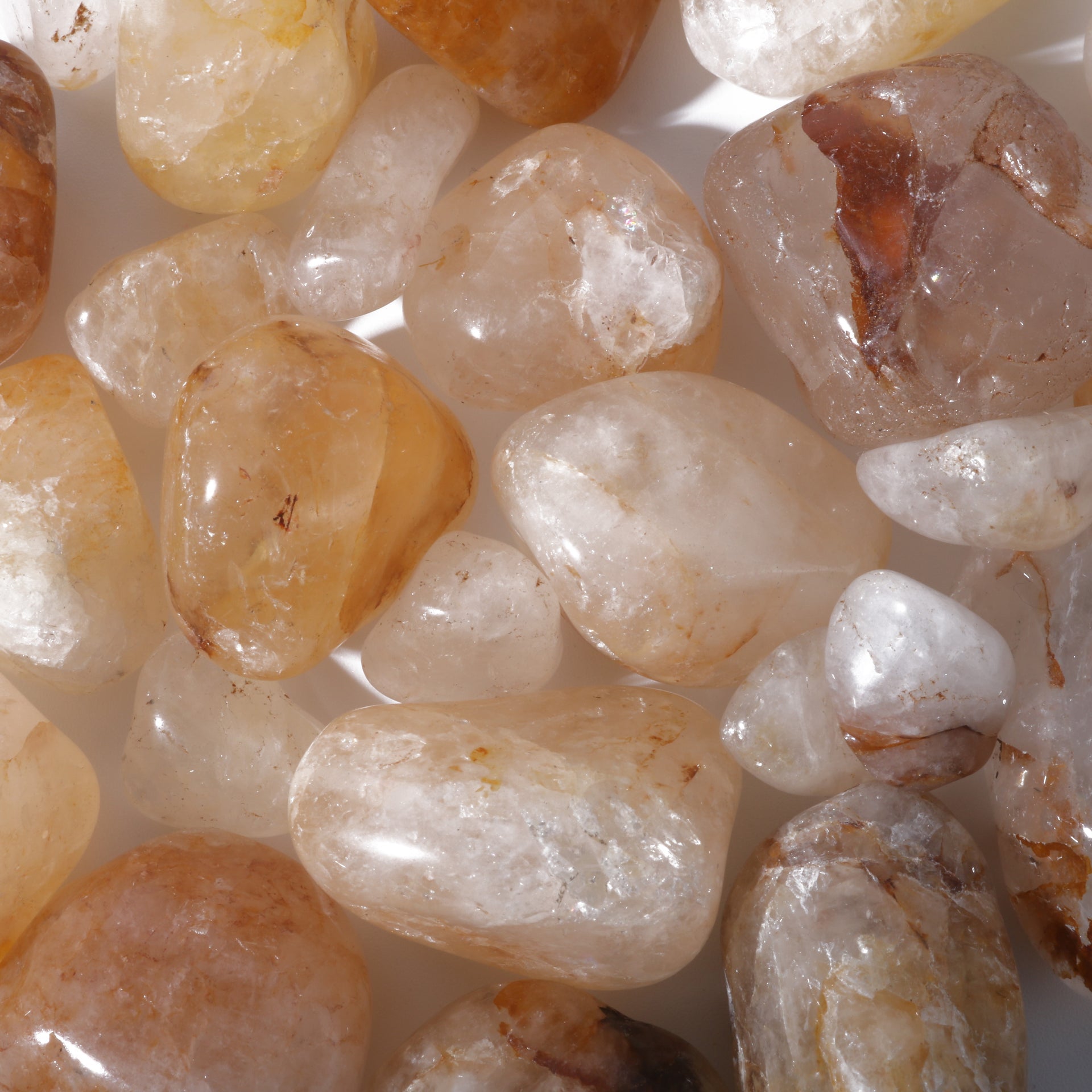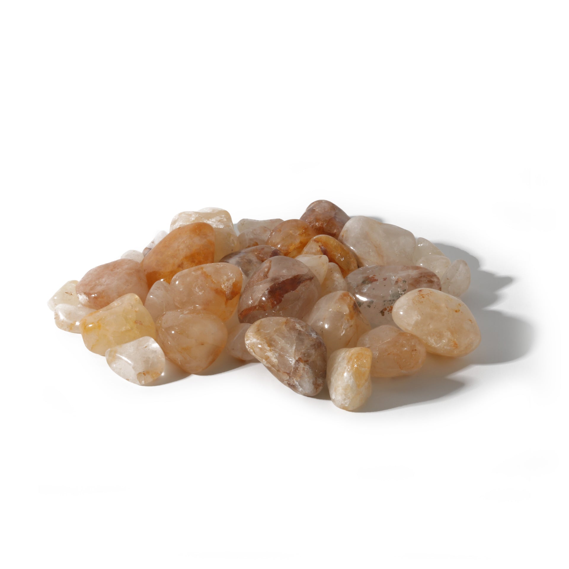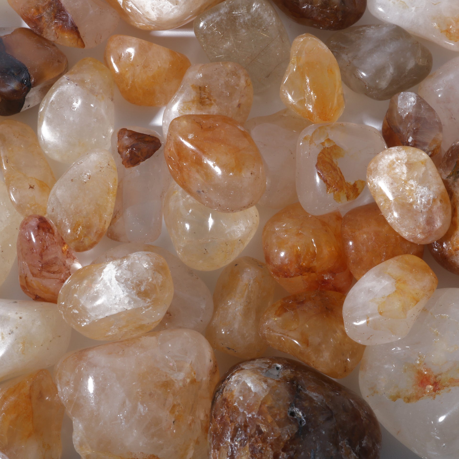 Natural Golden Healer tumbled stones (Hematoid Quartz or Gold Quartz) is a clear quartz crystal with natural iron inclusions that give them a golden tint. The colour ranges from a light yellow to rich golden hues.