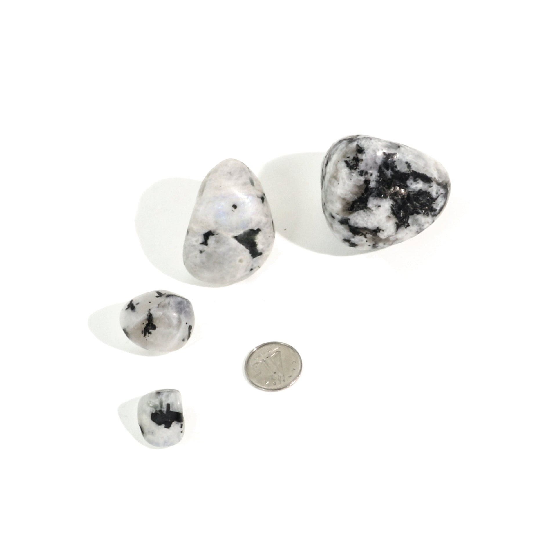 Discover the intuitive and balancing powers of our Rainbow Moonstone Tumbled Stones, sourced directly from India.