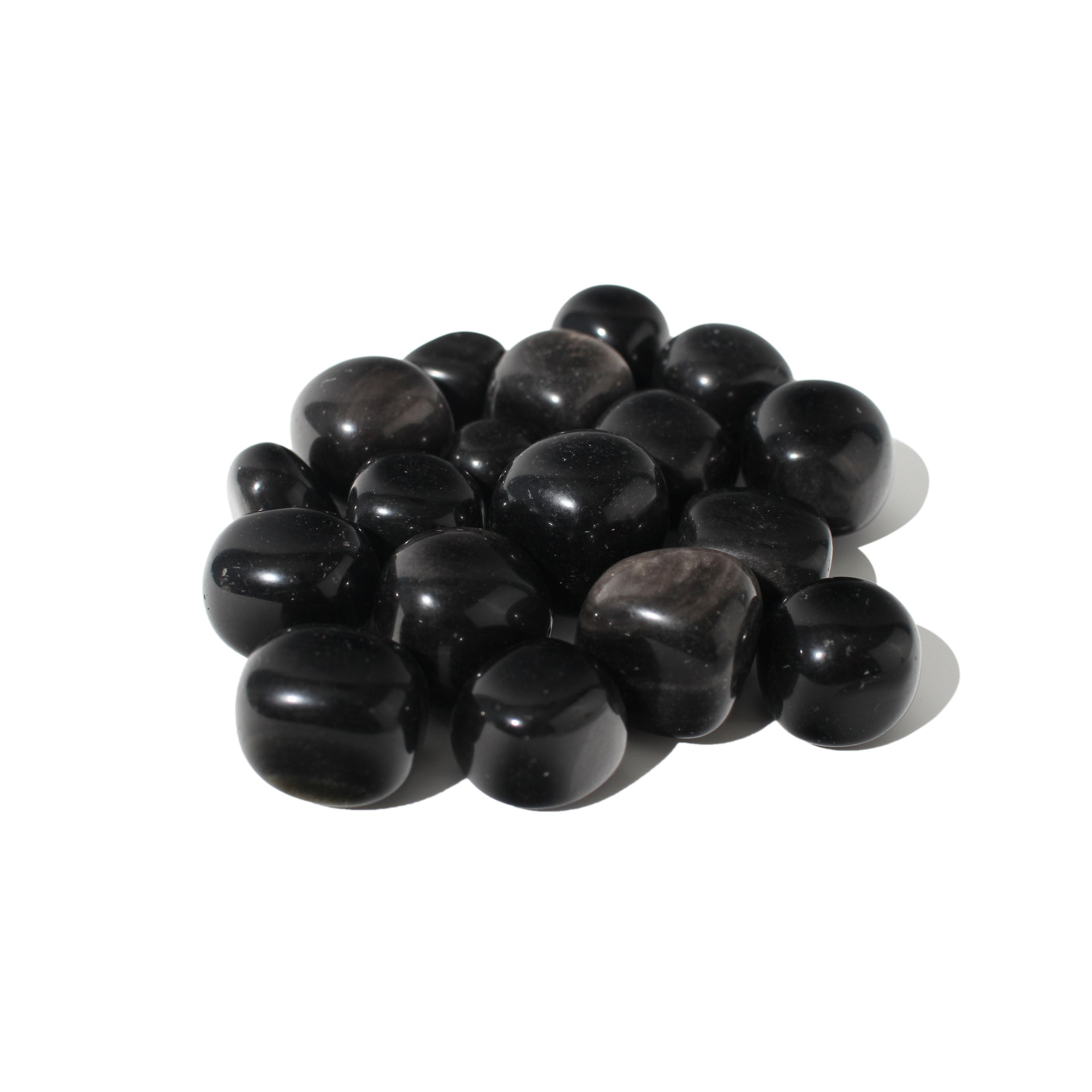 Our Silver Sheen Obsidian Tumbled Stones are a lustrous take on protective energy, gleaming with a unique, silver glow.